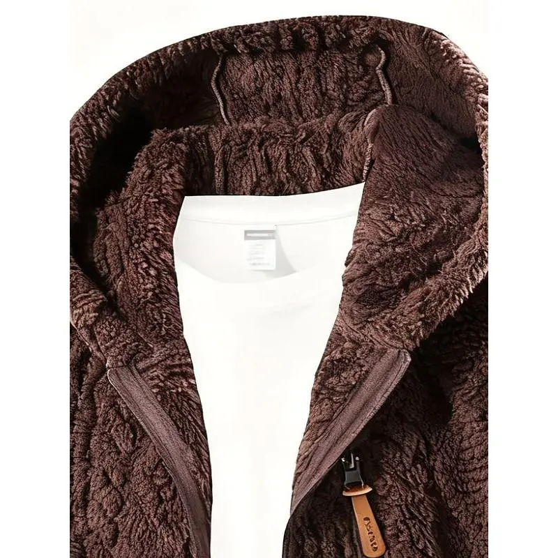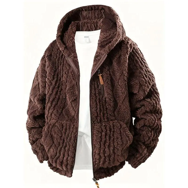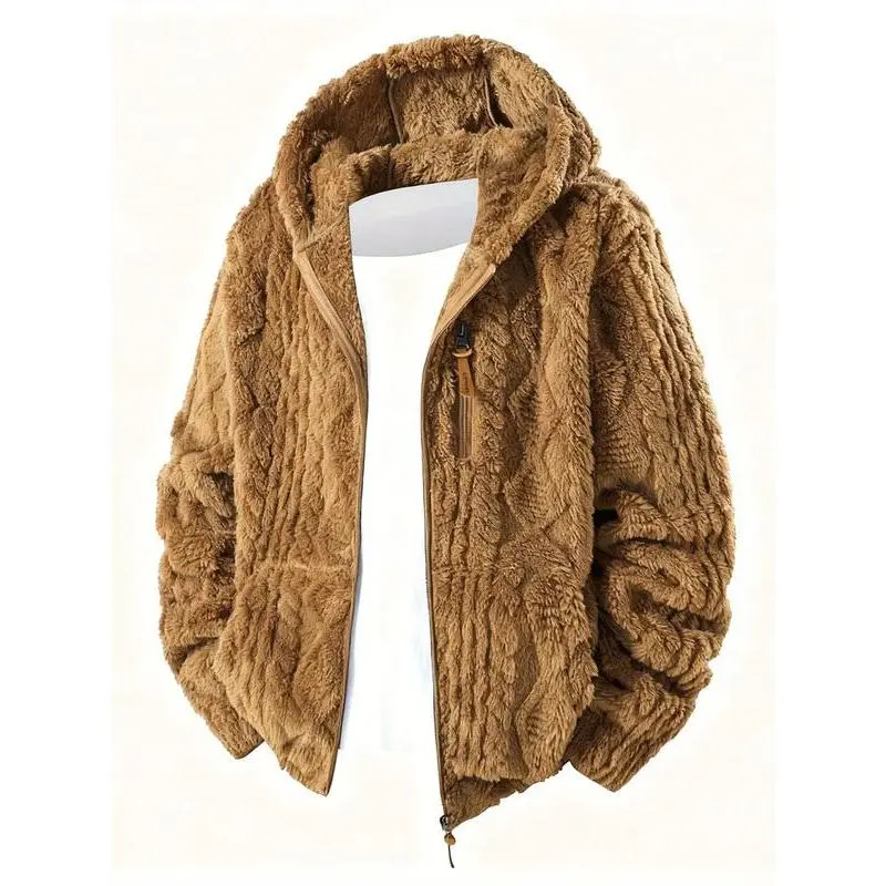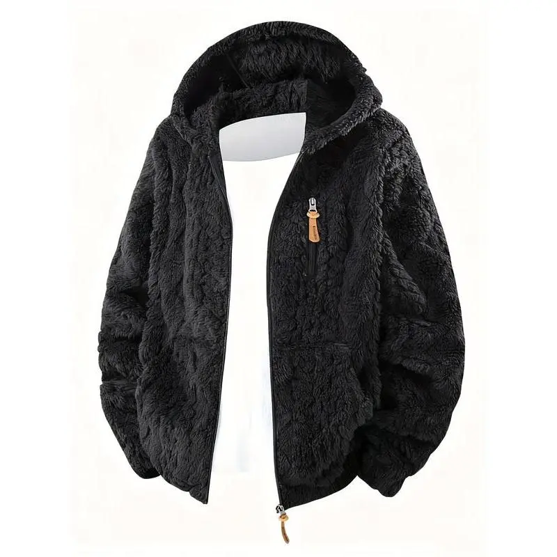 Men's Casual Fleece Jacket, Hooded Polar Fleece Zipper Coat, Fall Winter New Fashion, Travel Running Gym, Comfortable Durable Material