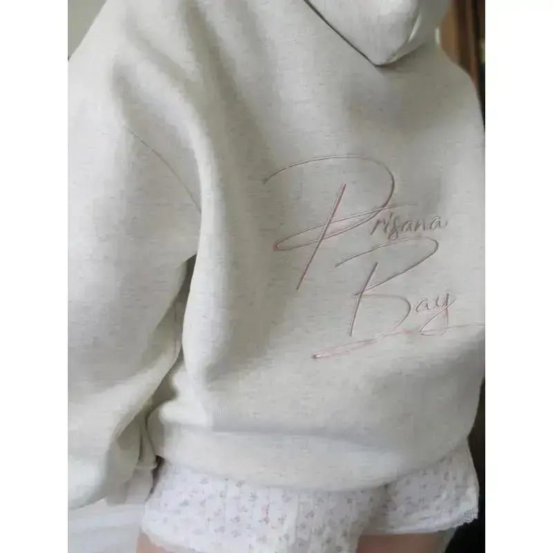 Bowknot Retro Trend Simple Floral Letter Bowknot Pattern Gray Pullover Sweater Top Embroidered Hoodie Can be used with a raincoat