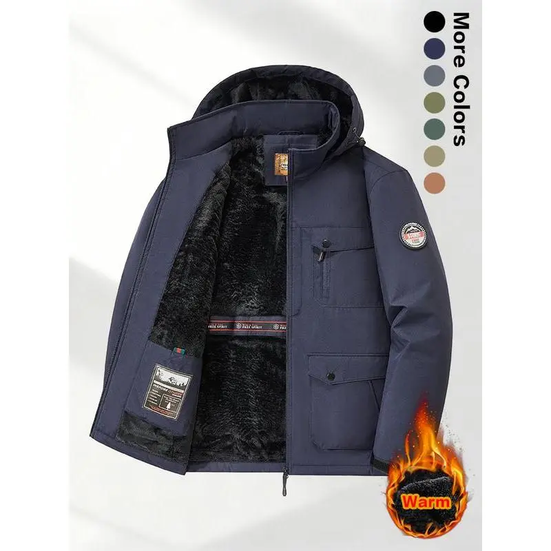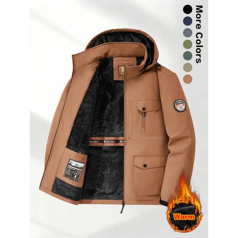 Men's Winter Sherpa Fleece Lined Hooded Jacket, Warm Windproof Multi-Pocket Work Coat, Suitable for Outdoor Activities and Casual Wear