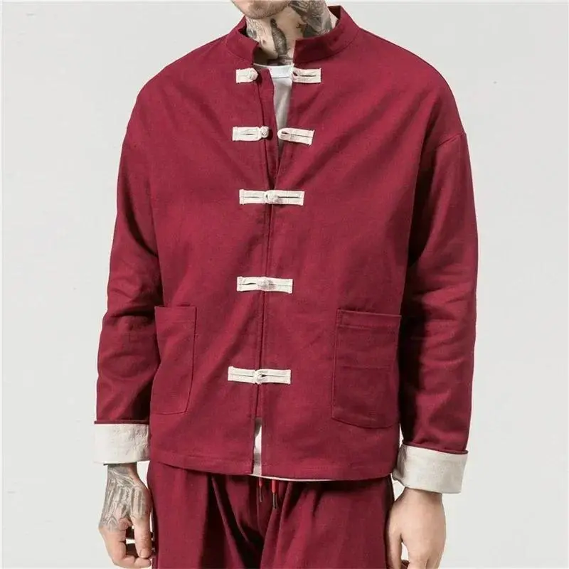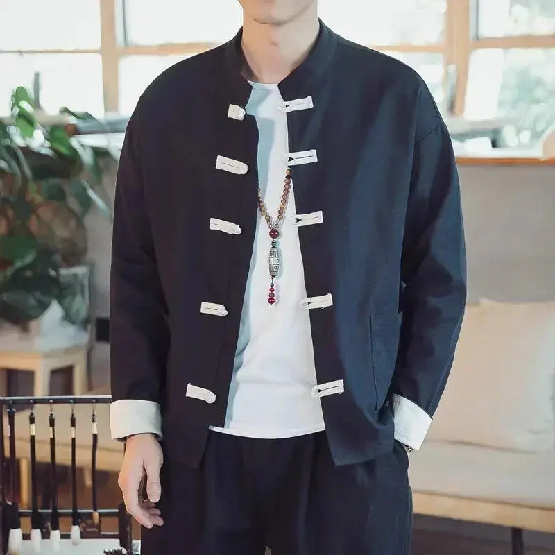 2025 Chinese Traditional Retro Jacket Men Autumn Long Sleeve Tang Suit Chinese Style Collar Button Jacket Oriental Cotton Kung Fu Shirt