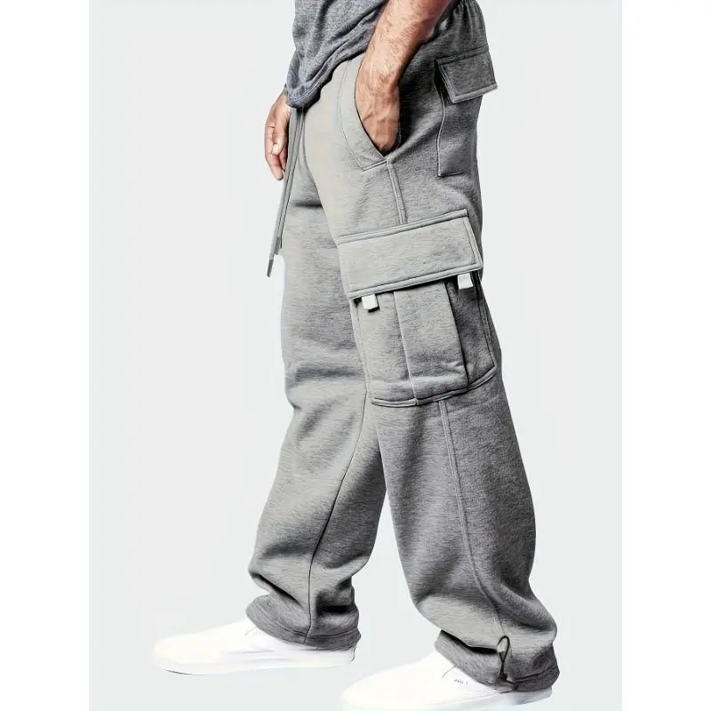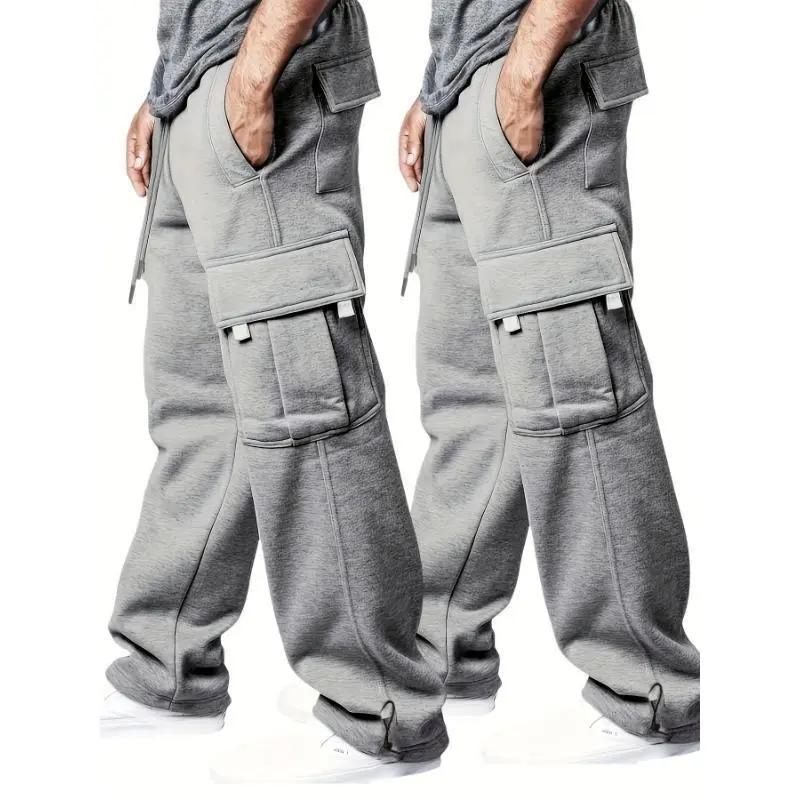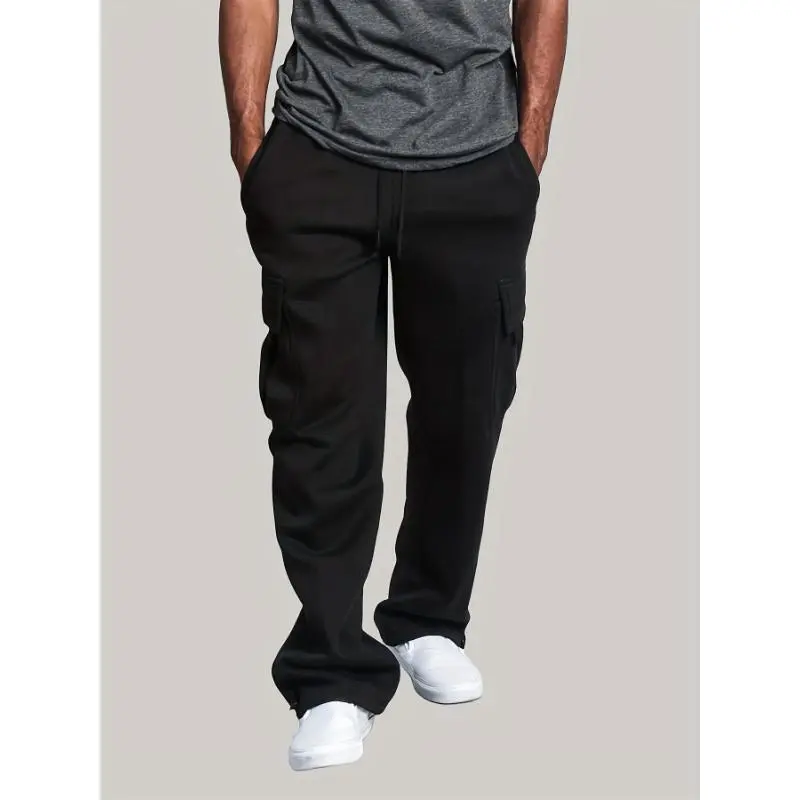 2pcs, Men's Solid Loose Fit Cargo Pants With Multiple Flap Pockets, Casual And Classic Sweatpants For Sports Outdoors Activities, Winter & Fall Holiday gifts Ideal Gift for Fabric Menswear