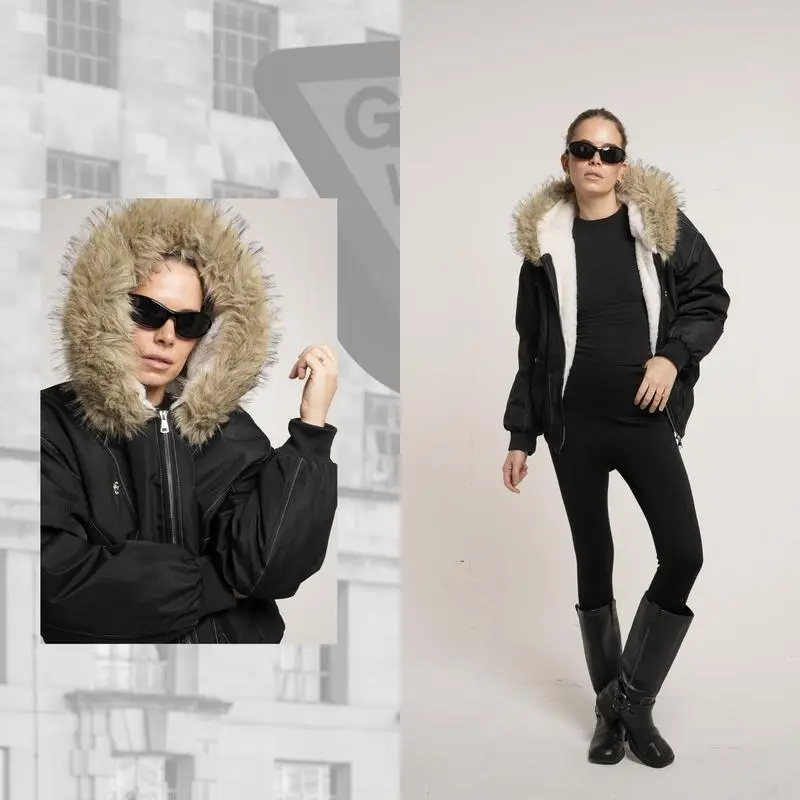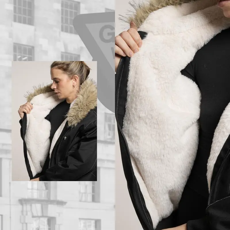 PUFFIT STM-TEX Faux Fur Lined Waterproof Bomber Jacket With Faux Fur Collar Hood,Elegant And Sophisticated,Enhances Warmth, Providing A Soft,Beautiful And Warm, Offering Both Style And Practicality,Y2K Style