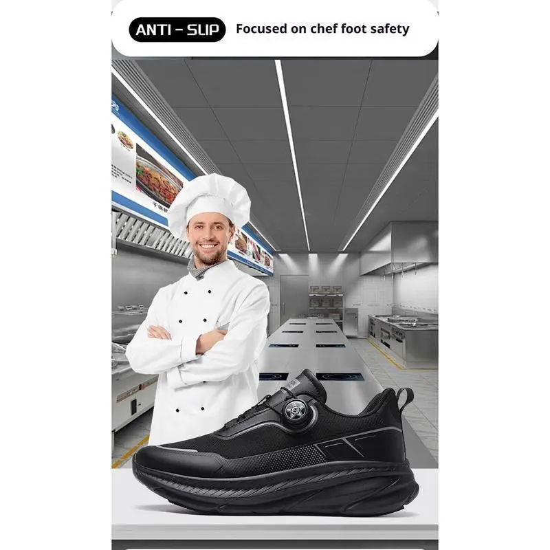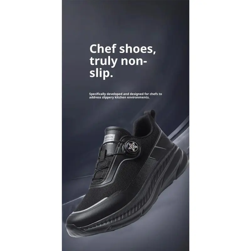Men's anti slip work shoes, oil resistant and waterproof, with PU and mesh design on the upper, waterproof and breathable, suitable for indoor, outdoor, hospital, and kitchen use.