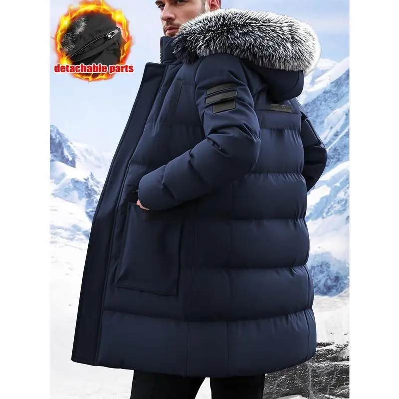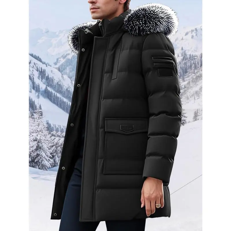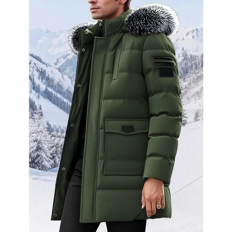 Men'S Heavy-Duty Winter Jacket - Thermal Insulated Cold Weather Coat with Hood, Full-Zip Front Closure, Large Pockets - Non-Stretch Fabric for Skiing, Hiking, Thick, Winter Jacket, Hiking Gear, Casual Style, Durable Construction, Outdoor Enthusiasts