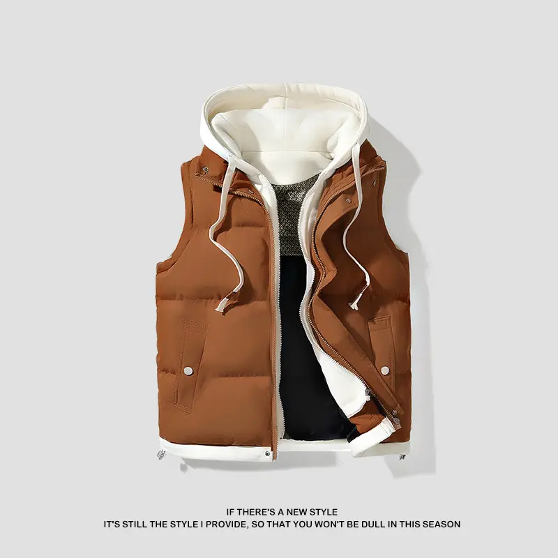 Luxury Simulation Two-Piece Vest Jacket-Sleeveless, Hooded, Zipper Coat, Suitable for Autumn and Winter | Machine Washable Menswear Tops