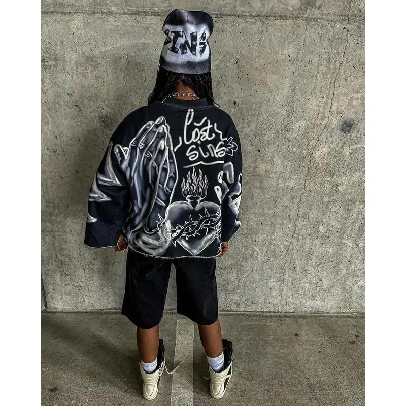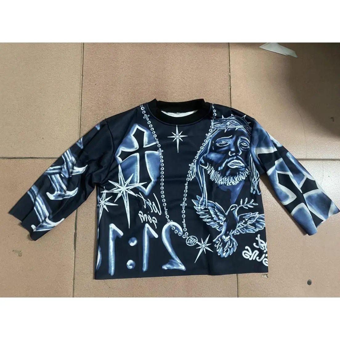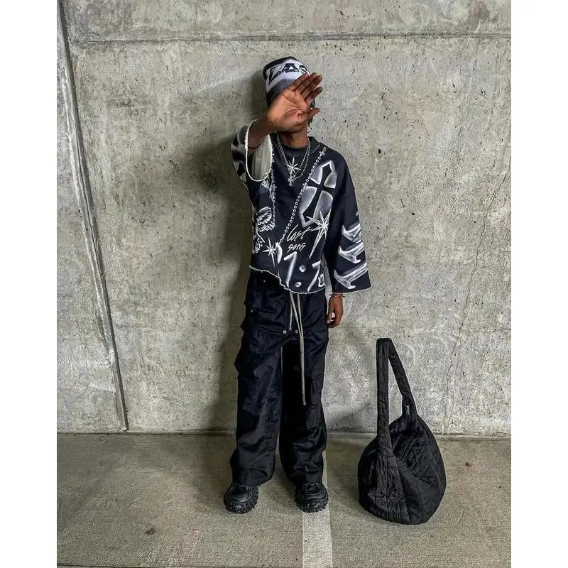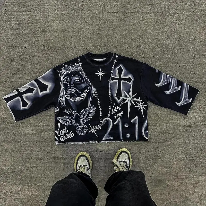Y2k New Hip Hop Punk Graffiti Design Pattern Printed T Shirt Mens and Womens Retro Harajuku Gothic Oversized Short Sleeved Tops???