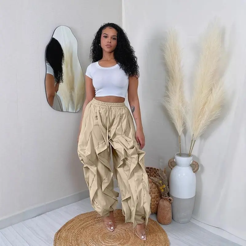 2025 Autumn New European and American Elegant Commuter Workwear Patchwork Lace Lantern Pants Jogger Pants