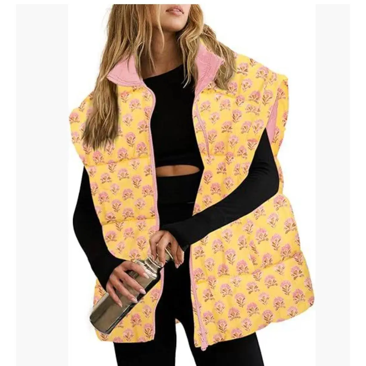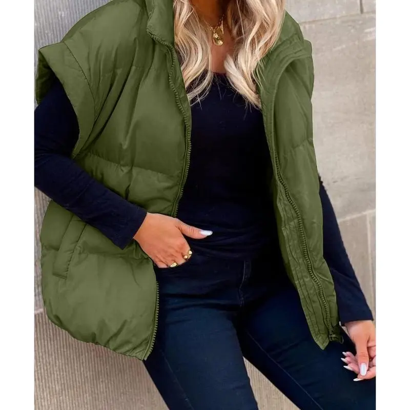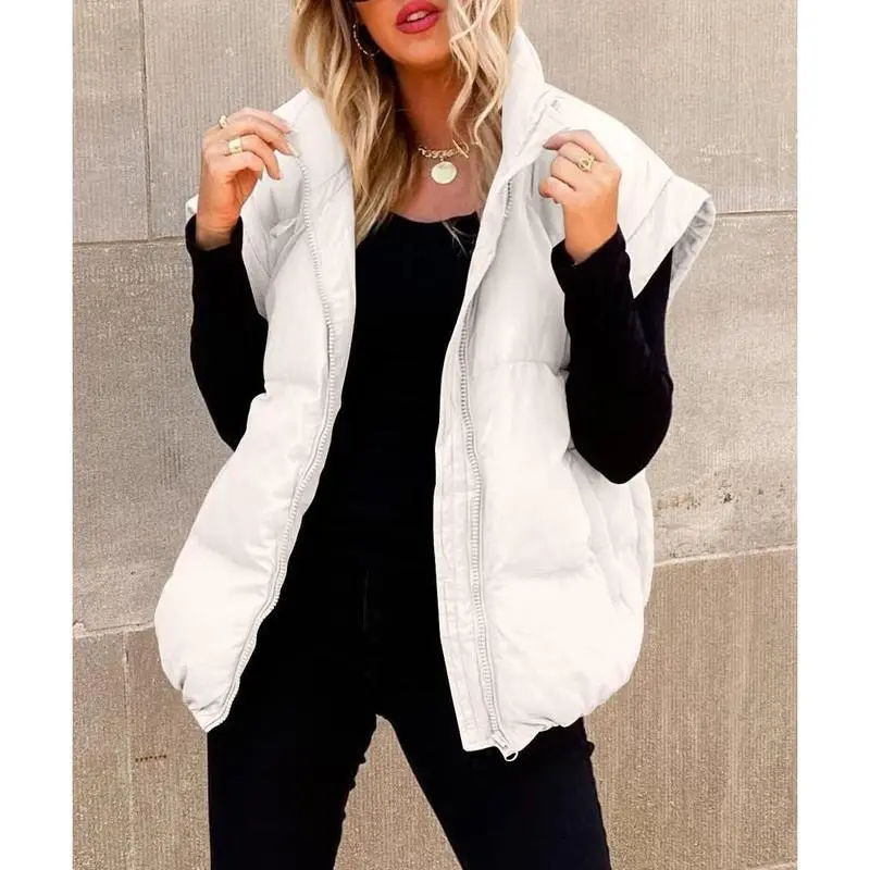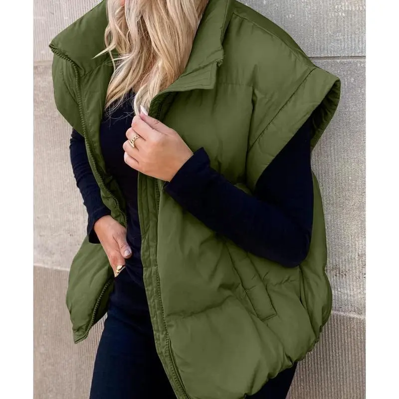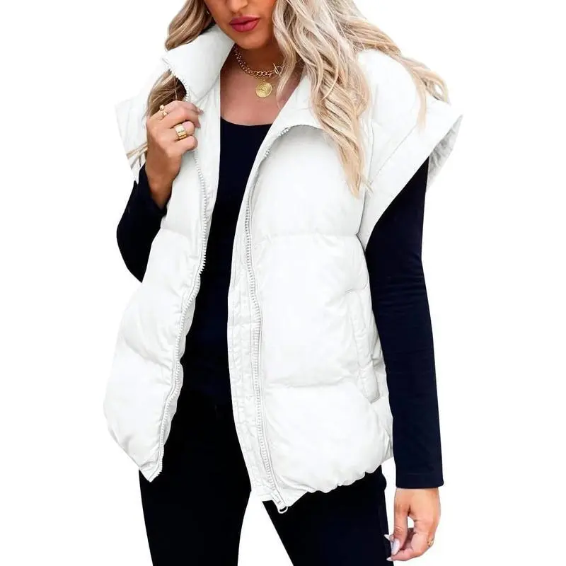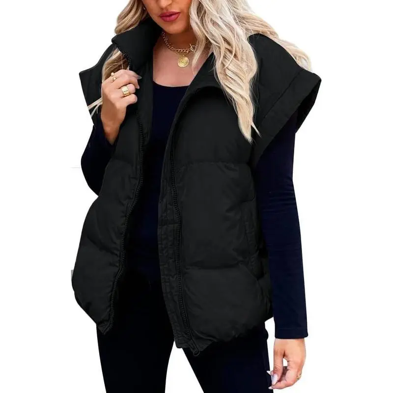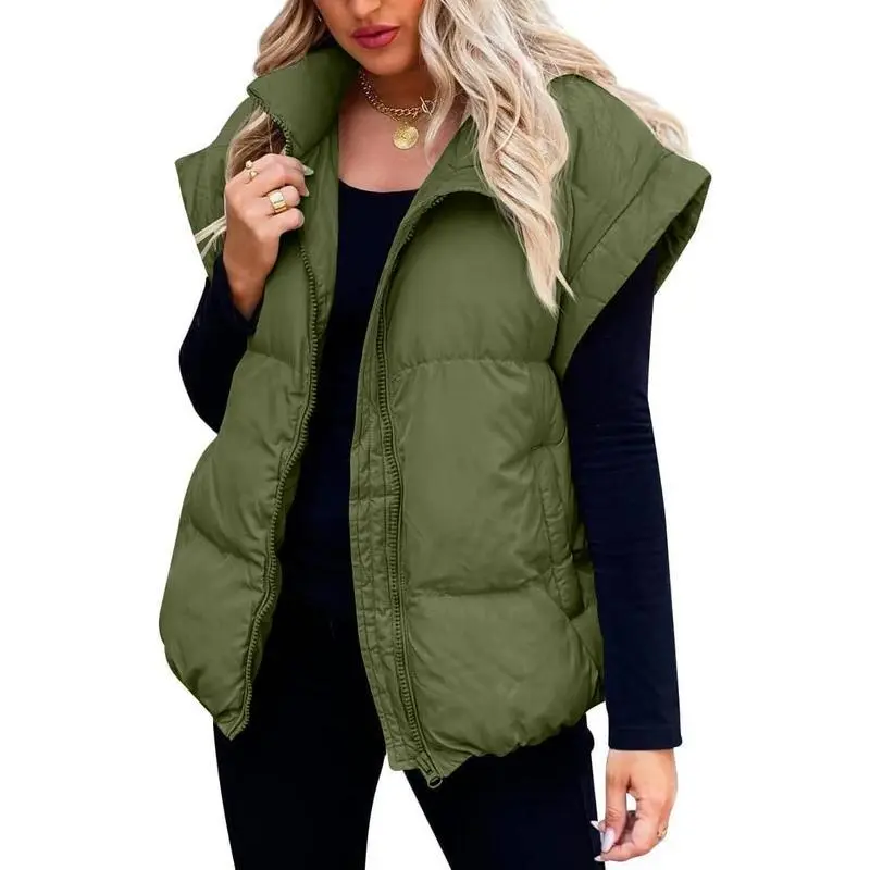 Womens Quilted Puffer Vest Casual Stand Collar Cap Sleeve Coat Zip Loose Fit Warm Outerwear