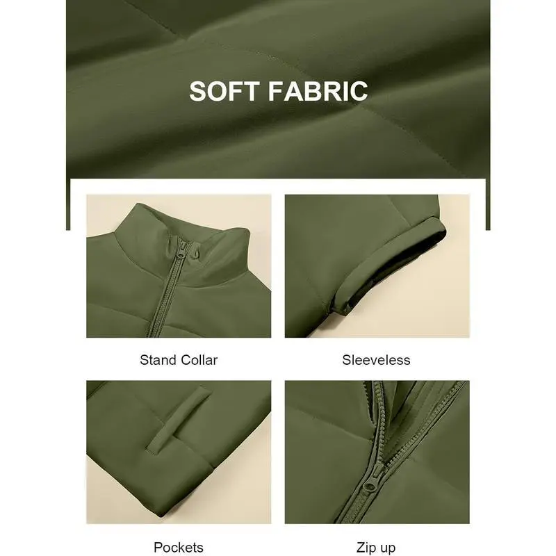 Puffer Vest Women Lightweight Quilted Sleeveless Jackets Winter Zip Up Warm Coat Womens Fall Winter Sleeveless Puffer Vest with Pockets Women’s quiltedr vest made of high quality material, lightweight, soft, bring comfort and warm. Stand Collar Quilted Gilet Coat for Women A must have in your winter closet! The women's puffer vest features stand-up collar, full zipper, cap sleeve, quilted design, with two side pockets, comfortable and warmth to wear.
