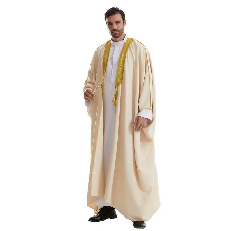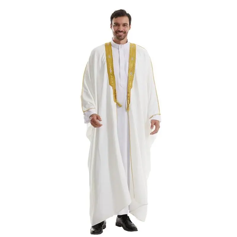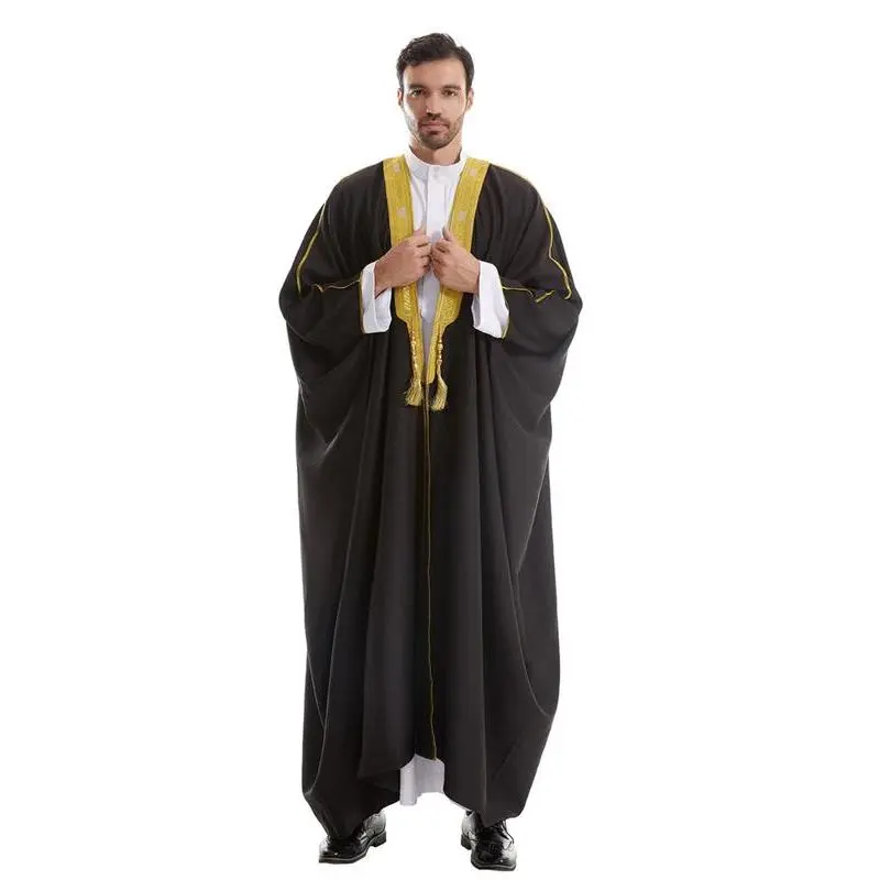 Muslim Middle East Men's Embroidered Long Robe, Traditional Arabic Clothing, Comfortable and Stylish Outerwear, Perfect for Daily Wear, Premium Traditional Thobe