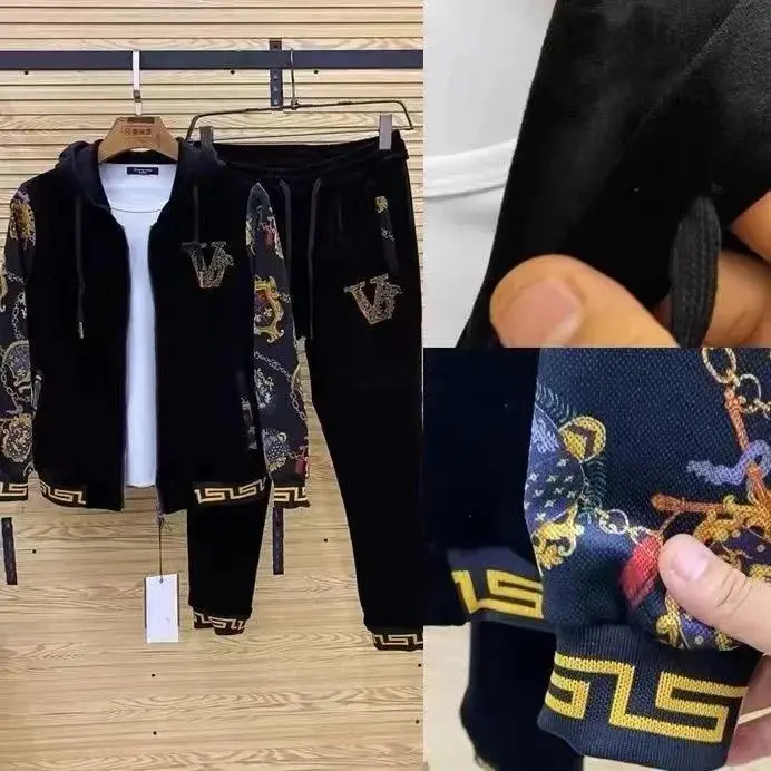 men'sgoldvelvetcasualtwo-piecesetEuropeanandAmericanspringnewouterwearpantsfashionyouthsuitmensUnisexLongSleevePoloShirt