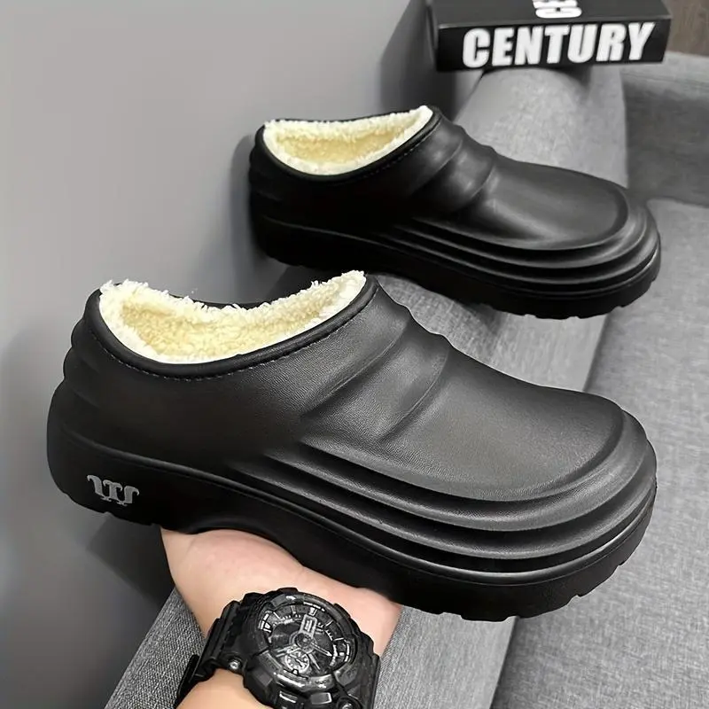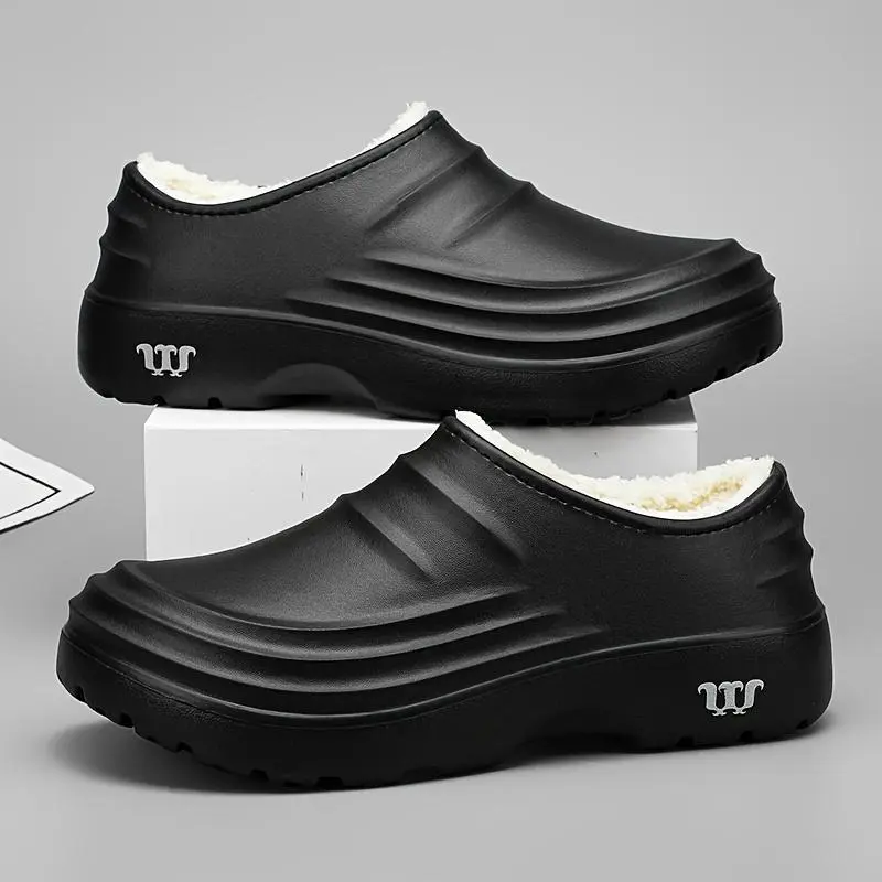 Women's Waterproof, Anti-Slip Work Clogs with Plush Lining - Black EVA Chef & Hospital Shoes, Oil & Odor Resistant, Comfortable Thick Sole for All-Day Wear