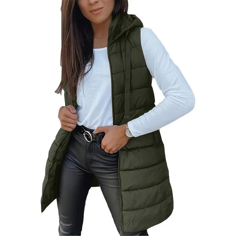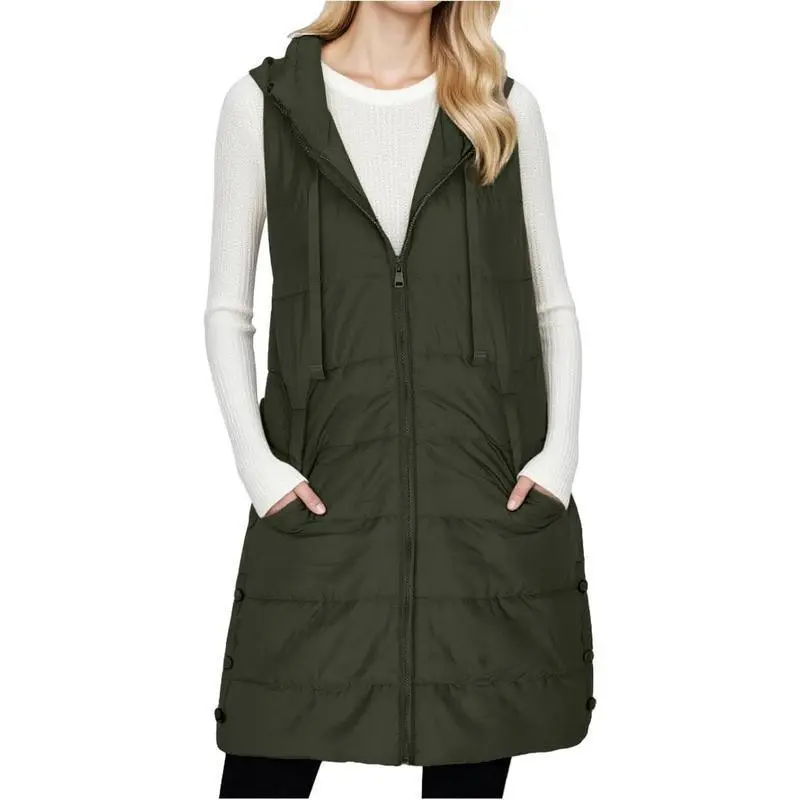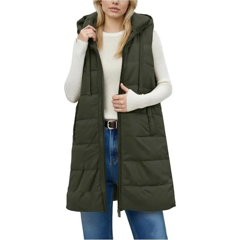 Long Puffer Vest Women 2025 Winter Warm Quilted Sleeveless Vests Puffy Zip Up Fall Coat Outerwear