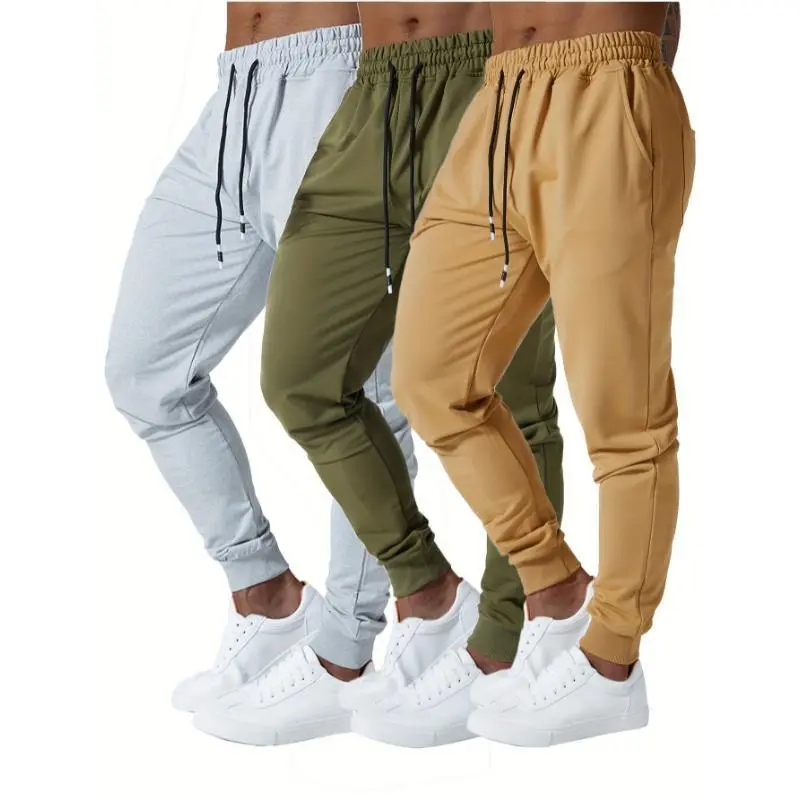 [3pcs Elastic Jogger Sweatpants Gym] 3pcs Men's Jogger Sweatpants - Ultra Elastic Waist With Deep Side Pockets, Cotton Blend, Ideal For Gym & Running, Machine Washable - Black, Navy, Gray