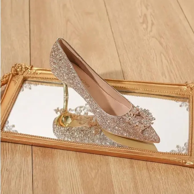 Womens High Heel Shoes Fad Elegant Crystal Pointed Toe Pumps Retro Shallow Mouth Banquet Party Wedding Women Shoes Zapatos Mujer