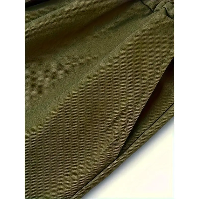 [Casual | Cargo] Olive Green Polyester Men's Casual Cargo Pants | Straight Leg, Multiple Pockets, Drawstring Waist, Loose Fit | for Spring & Fall Outdoor Activities
