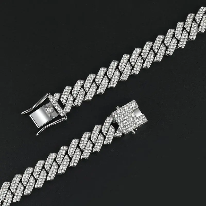 14mm wide diamond silver 18cm long