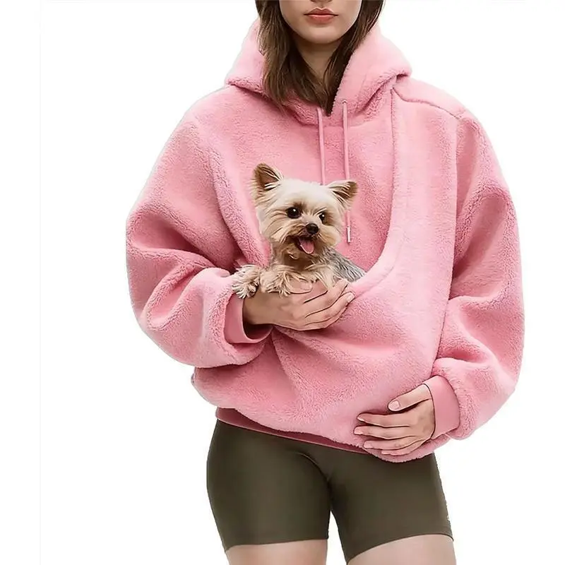 ??BUILT-IN PET POUCH: The standout feature!A spacious, soft, and secure kangaroo-style pocket with a large opening allows your pet to peek out or snuggle in.The pouch provides a warm, cozy, and comforting environment, reducing anxiety and making it perfect for training new puppies or comforting nervous pets. ??ULTRA-SOFT & PREMIUM FLEECE: Made from high-quality, plush, and breathable fleece fabric.This hoodie is incredibly soft against your skin and your pet's, ensuring all-day comfort for both of you.It's perfect for chilly days, relaxing indoors, or as a stylish top. ??OVERSIZED COMFORT FIT: Features a classic front pocket (in addition to the pet pouch) for your, a adjustable drawstring hood, and ribbed cuffs and hem to lock in warmth and keep out drafts.Designed with a relaxed, unisex oversized fit that offers freedom of movement and a cozy, slouchy look.It's ideal for layering and provides ample room for both you and your pet without feeling restrictive. ??DURABLE & PET-FRIENDLY DESIGN: Crafted with strong stitching to support the weight of a small animal.The fabric is durable enough to handle claws and occasional accidents, while still being easy to care for and machine washable. ??PRACTICAL & HANDS-FREE: Free your hands for shopping, working on your laptop, gardening, or enjoying a coffee while keeping your pet secure and content. It??s a game-changer for multitasking pet parents.