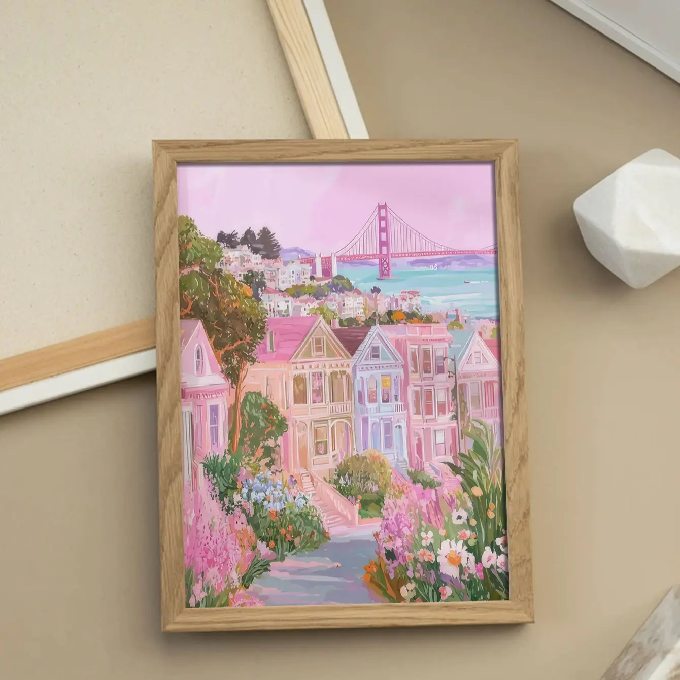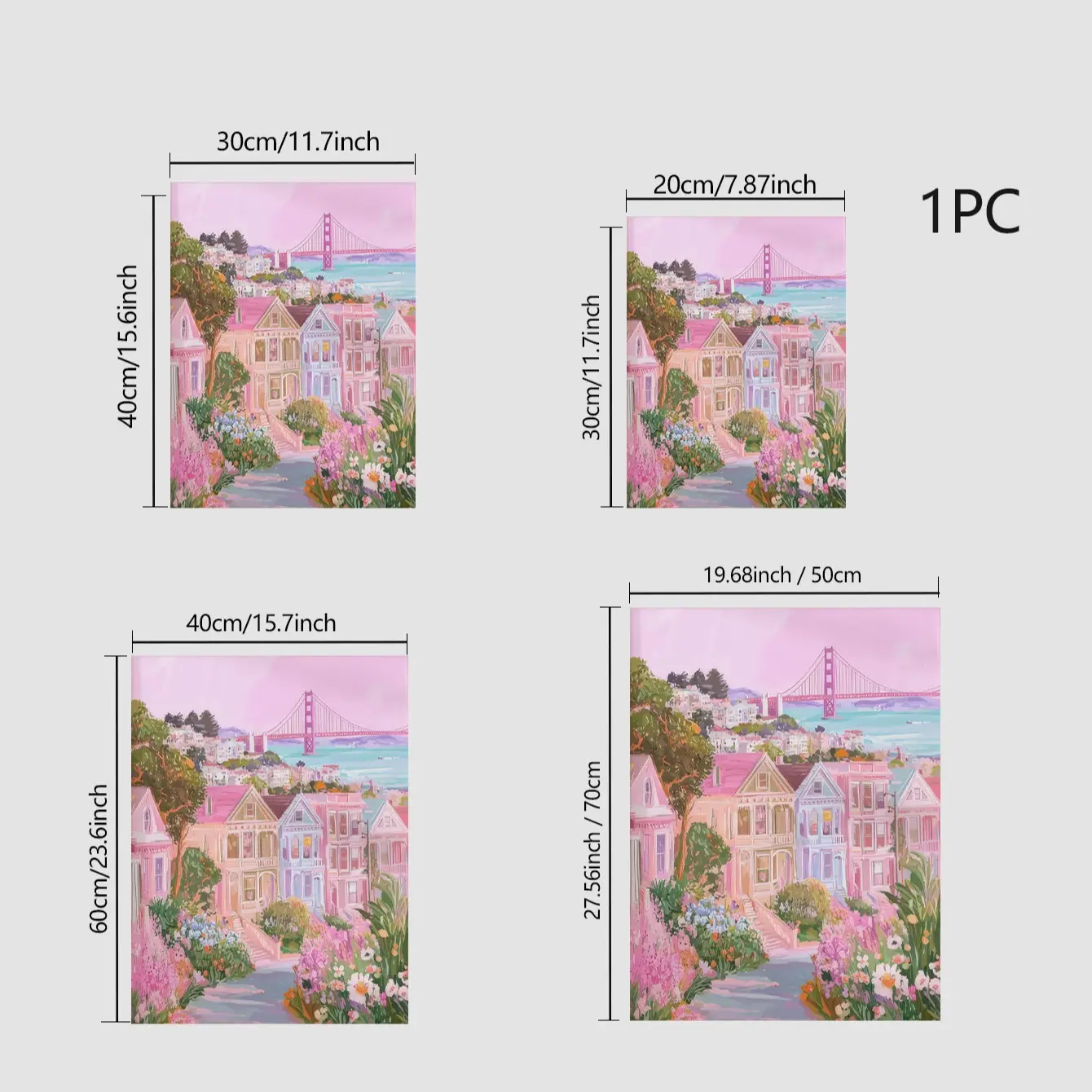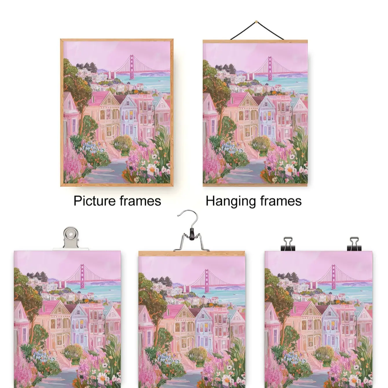 【San Francisco Theme】: Featuring a vibrant depiction of San Francisco, including the iconic Golden Gate Bridge and lady prints.