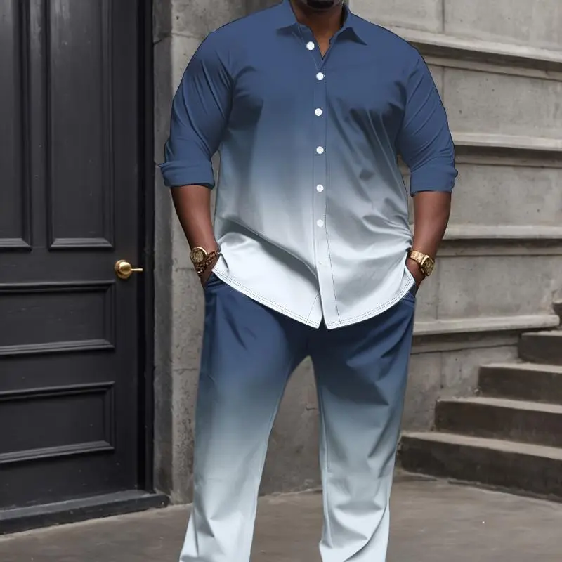 Large Size Men's Shirt Casual Suit Clothes Long Sleeve Menswear Gamis