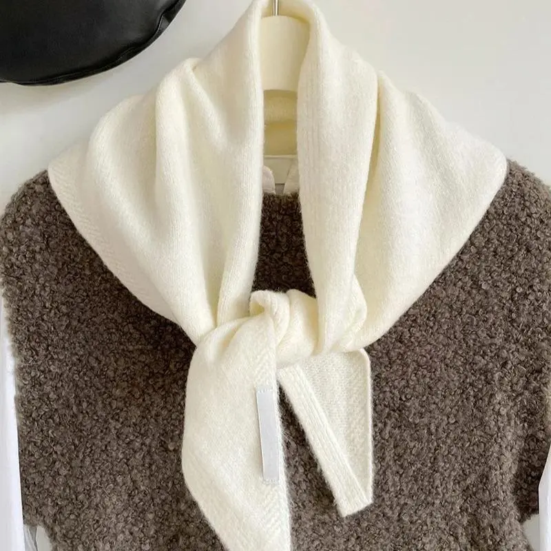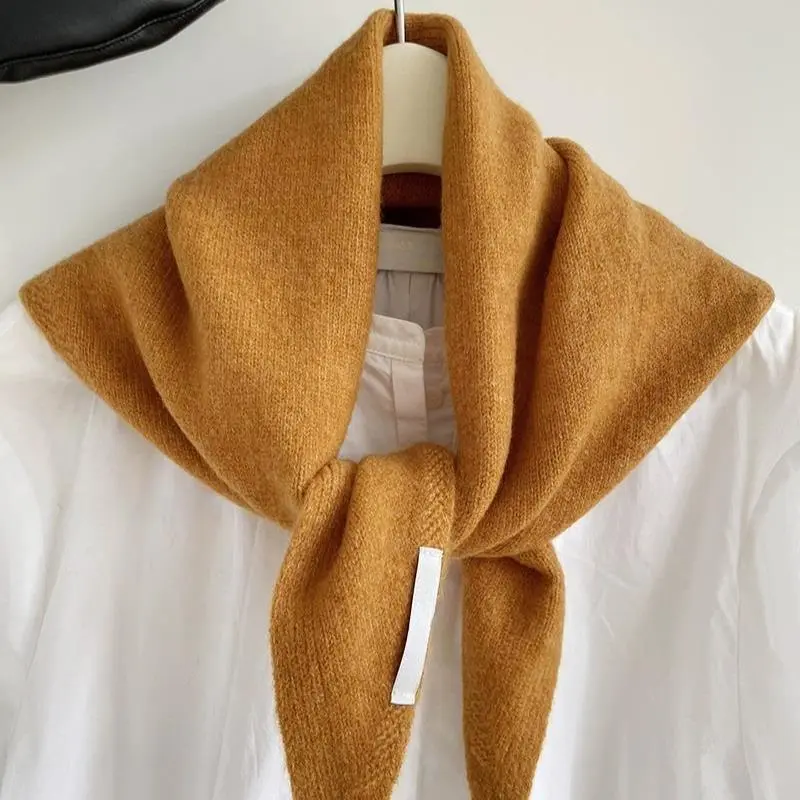 British Korean Style Niche Wool Knitted Triangular Scarf Women Headscarf Knitted Scarf Multi-functional Warm Knitted Scarf