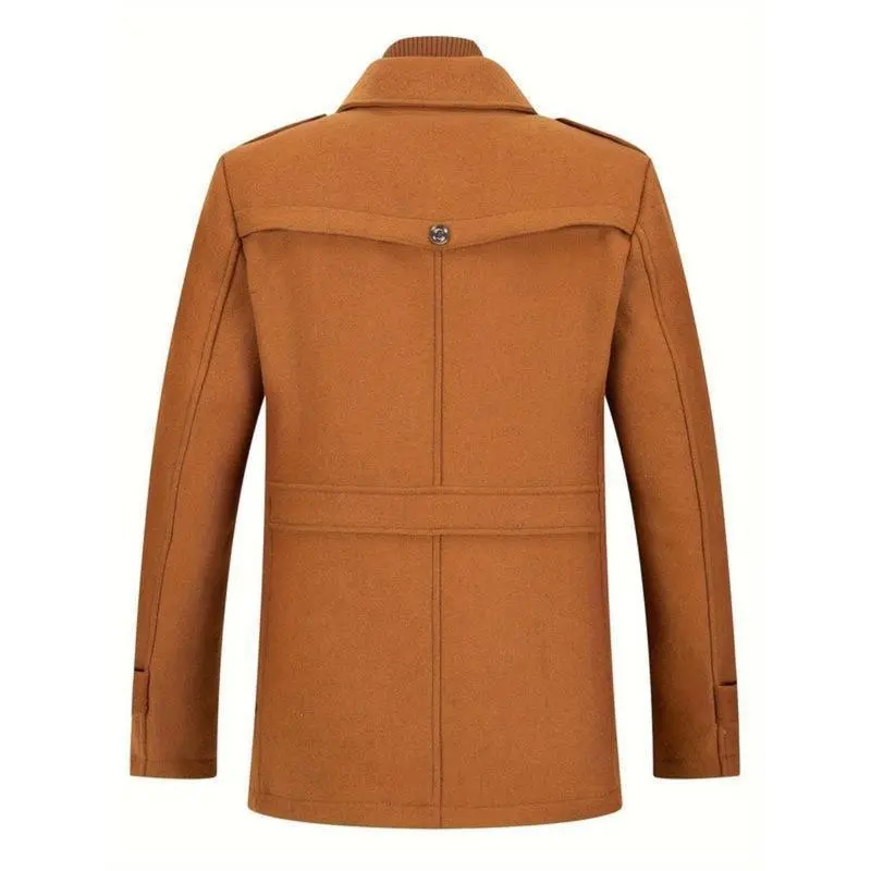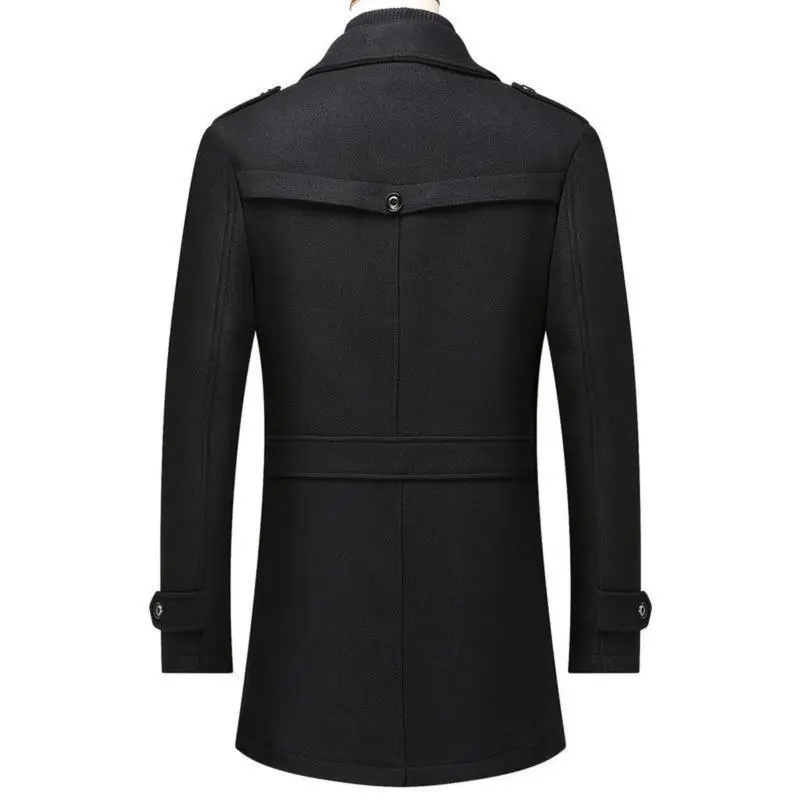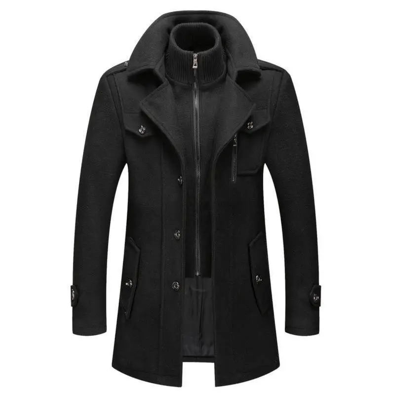 Men's Stand Collar Wool Blend Pea Coats With Removable Single Breasted Overcoat Menswear Jackets Long Sleeve