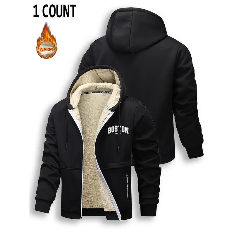 Men's Thickened Fleece Jacket ✨ Stay Warm and Stylish ✨ This men's thickened fleece jacket is perfect for casual wear. It features a printed letter hoodie, adding a touch of style. The lamb plush lining ensures comfort and warmth. Ideal for sports and everyday use, this jacket is a must-have. 🌟 Perfect for You This jacket is warm, handsome, and versatile. It's the ideal choice for men looking for a comfortable and stylish jacket. Order now! 🌟