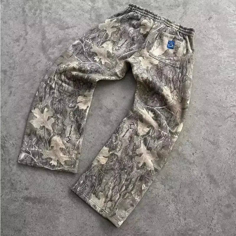 Y2K Men's Camo Sweatpants - Vintage Camouflage Pattern, Hip Hop & Gothic Style, Baggy Casual Trousers, Wide Leg Design Menswear Streetwear