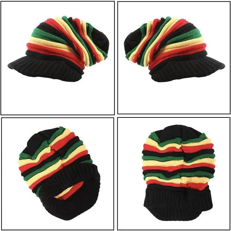 1/2 Pcs Wool Knit Rasta Hat Reggae Jamaican Cap Colorful Crochet Beanie for Men Women