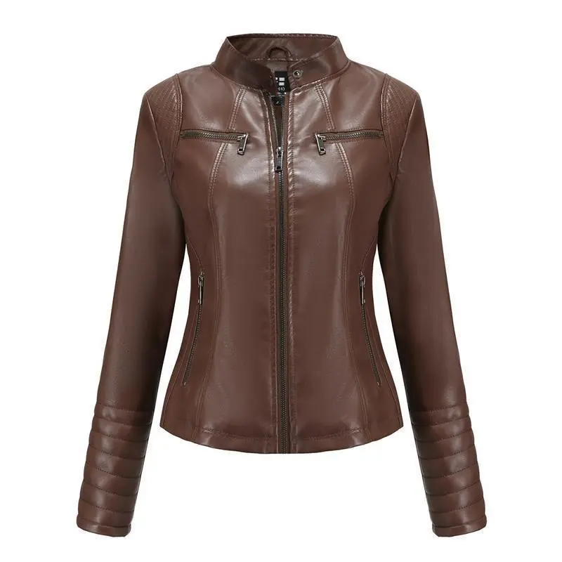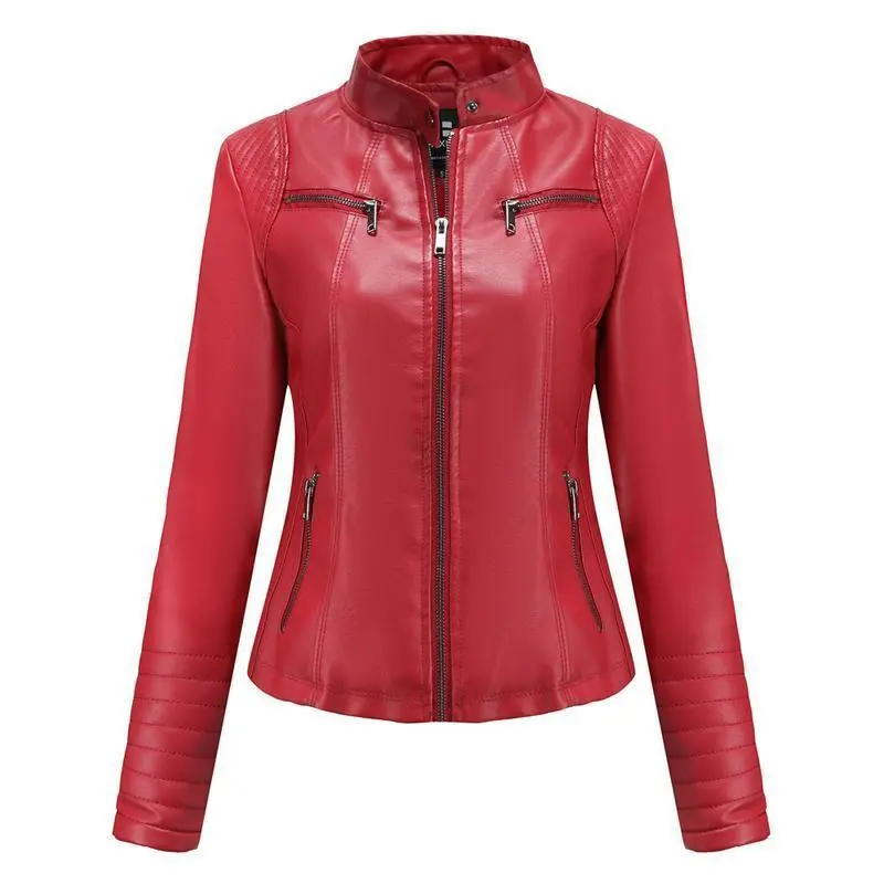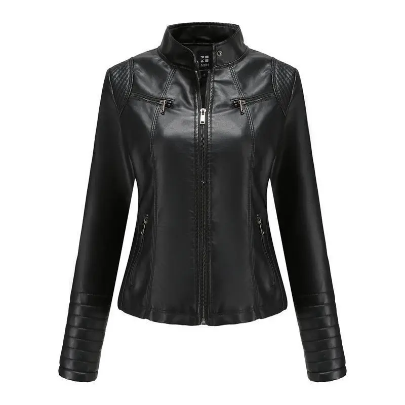 Women's Leather Jacket Spring Autumn Thin Motorcycle Jacket Short Fashion Women's Jacket