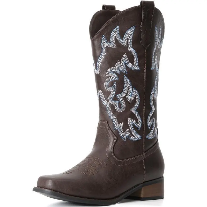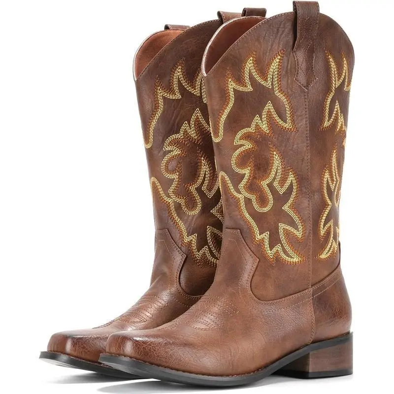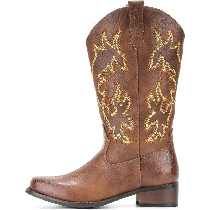 Cowboy Boots For Women Square Toe Cowgirl Boots Mid Calf Western Boots Pull On Fashion Cowboy Boots