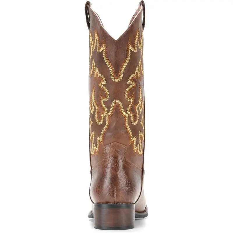 【PlusSize】Eleet Cowboy Boots for Men - Men's Western Boots With Embroidered, Slip Resistant Square Toe Chunky Heel Ankle Boots, Durable and Fashionable Retro Classic Short Botas Walking Shoes, Comfort Closed Footwear