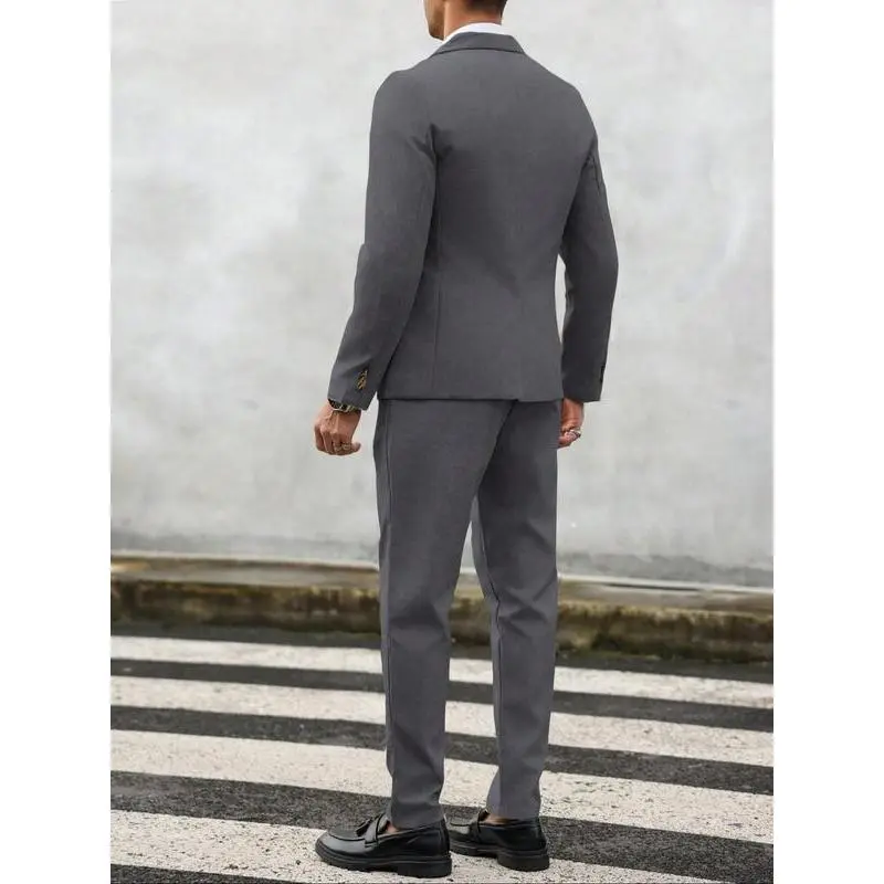 Men's Solid Color Blazer & Pants Two-piece Set, Slim Business Formal Suit Set for Work Office, Men's Spring & Fall Clothes Baby Pink Beige Menswear Long Sleeve