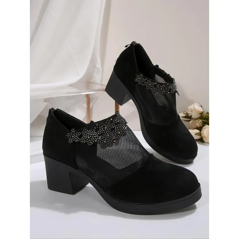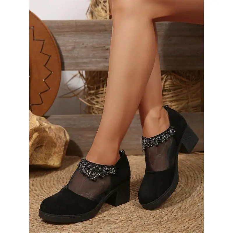Women's Vintage Style Slip-On Spring/autumn New French Velvet Wine Chunky Heel Mary Jane High-Heeled Shoes