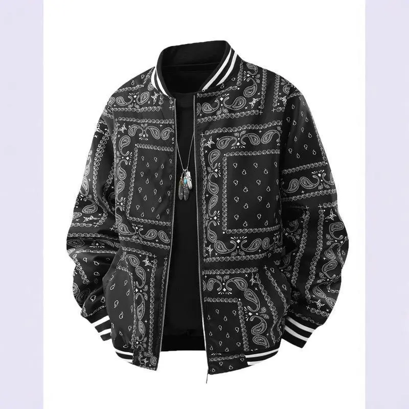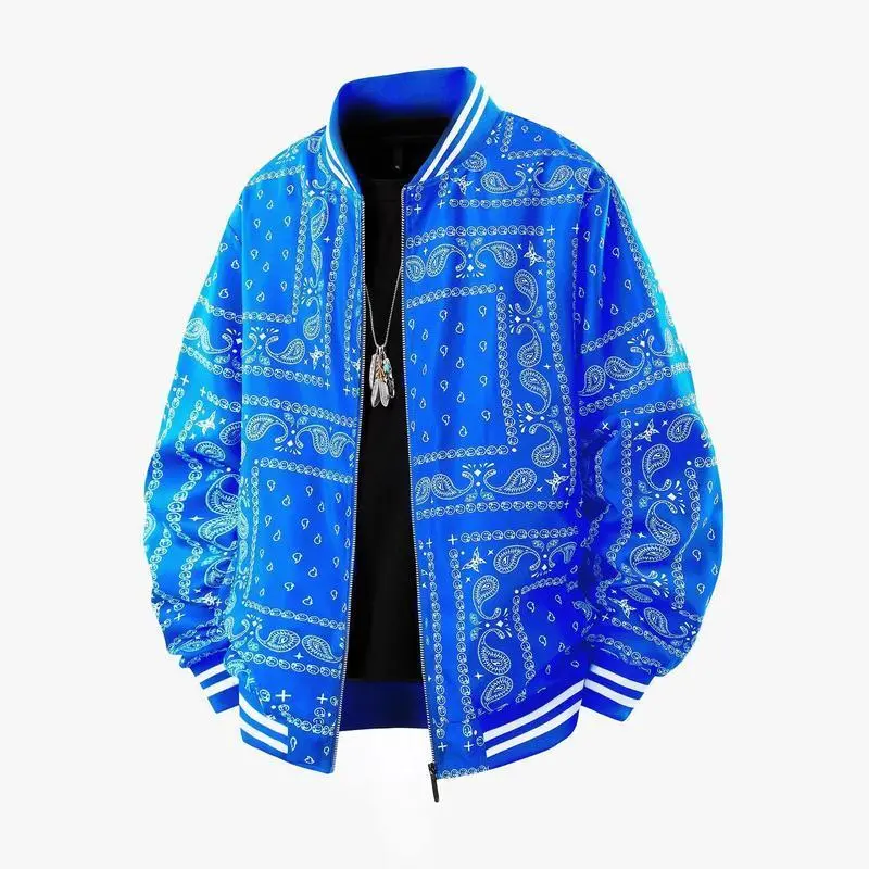 ?? Bold Street Style Bomber Jacket Tired of basic jackets? This bandana-print bomber jacket is your solution! The bold paisley pattern screams street style. It's perfect for concerts, hangouts, or adding edge to your daily look. It's like wearing your cool vibe on your sleeve. ?? Key Features Perfect for You Love unique, effortless style? Grab this bomber jacket! It's a must-have for those who want to stand out. Pair it with a tee or hoodie for a complete look. This jacket is your go-to for daily casual and hip-hop tops. ??