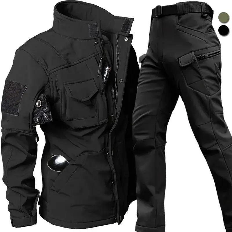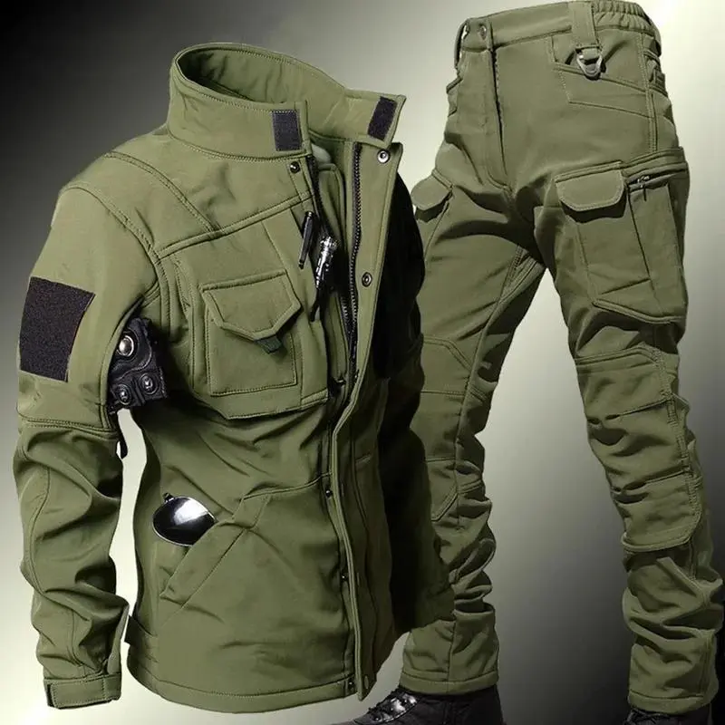 Men's Winter Windproof Waterproof Fleece-Lined Soft Shell Tactical Jacket and Pants Set | Thermal Uniform