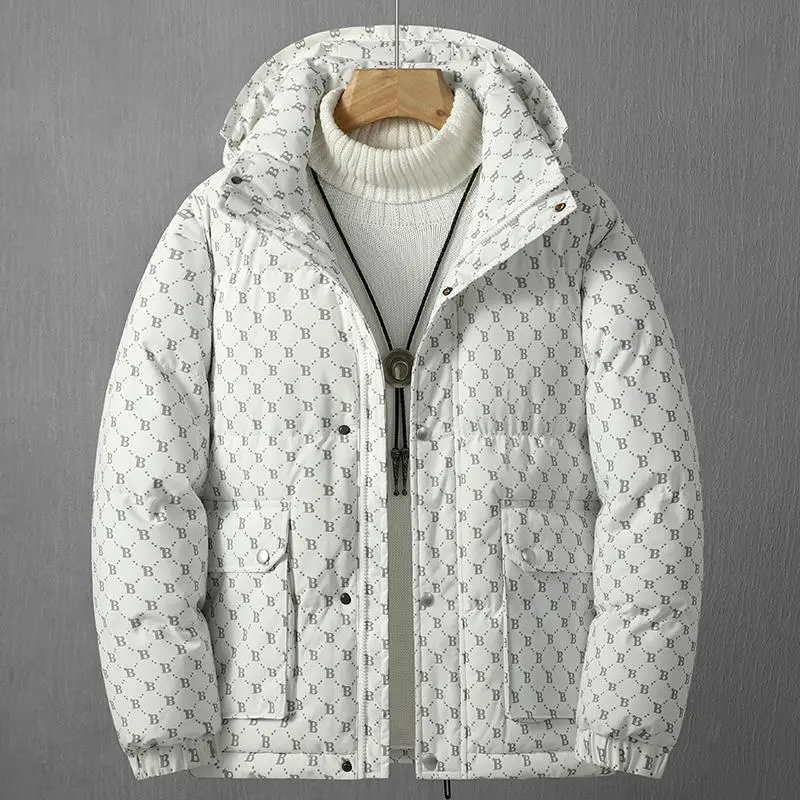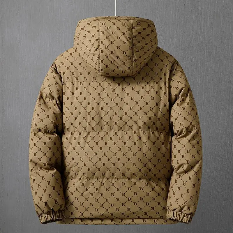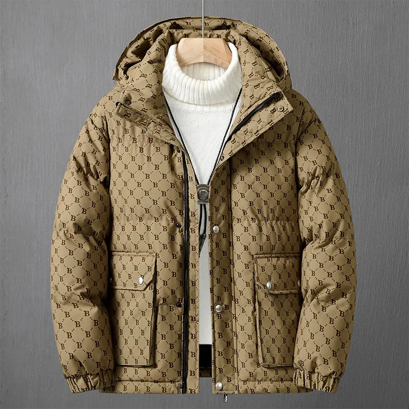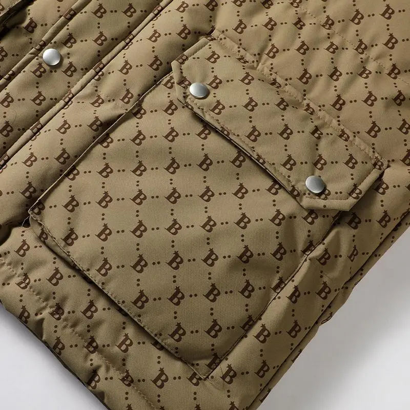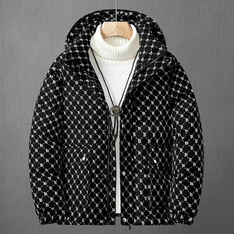 Men's New Winter 2025 Cotton Jacket, Padded Warm Coat with Hood, B Letter Design, Zip-Front Closure, Suitable for Autumn and Winter Casual Wear Menswear Tops Windproof Outerwear Regular Fit Outerwear