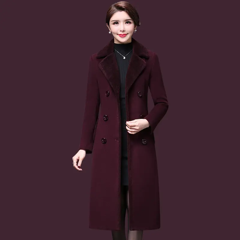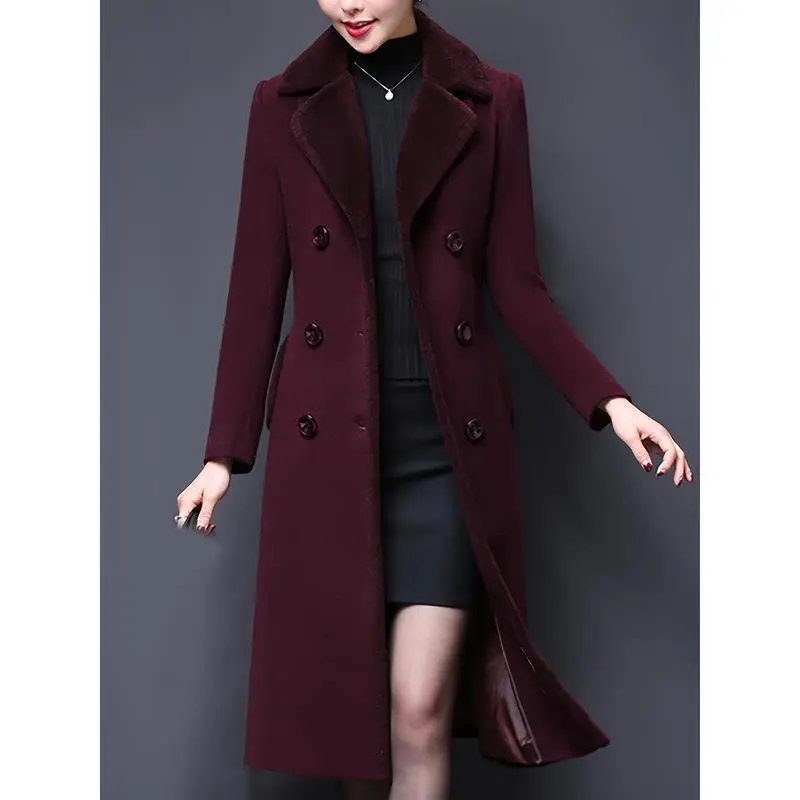 Women's Double-Breasted Lapel Mid-Length Wool Coat