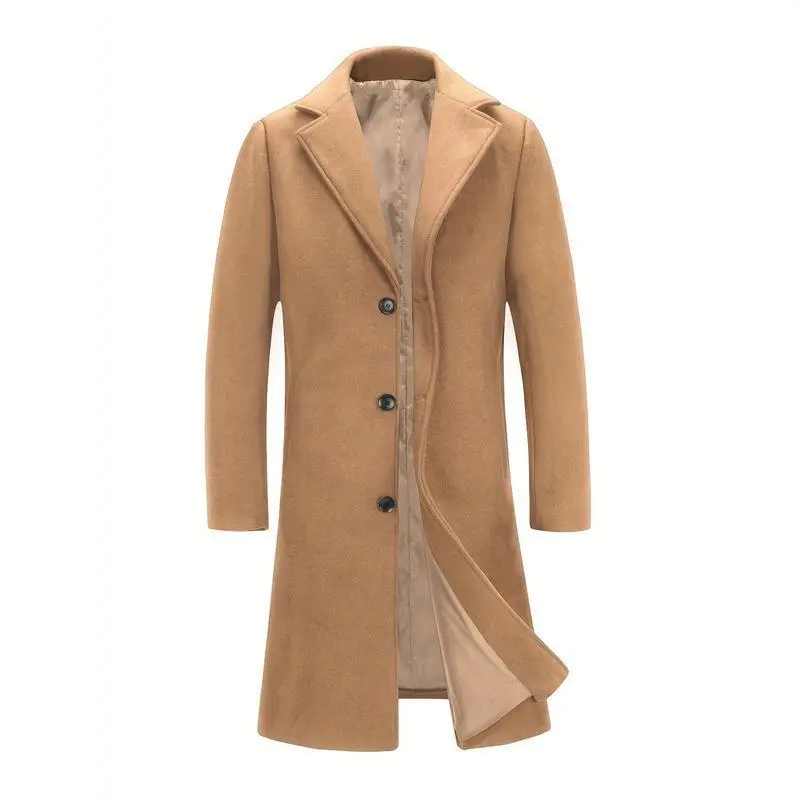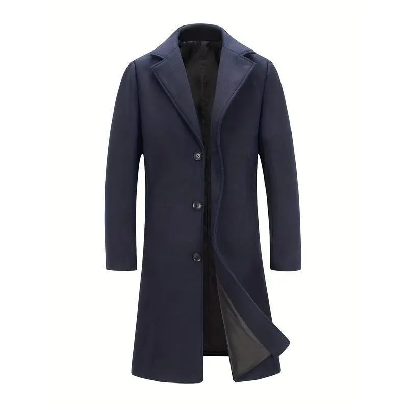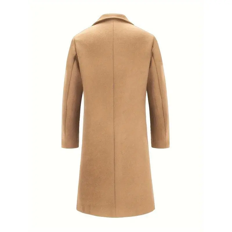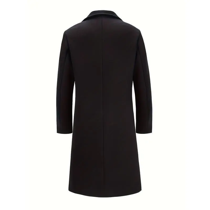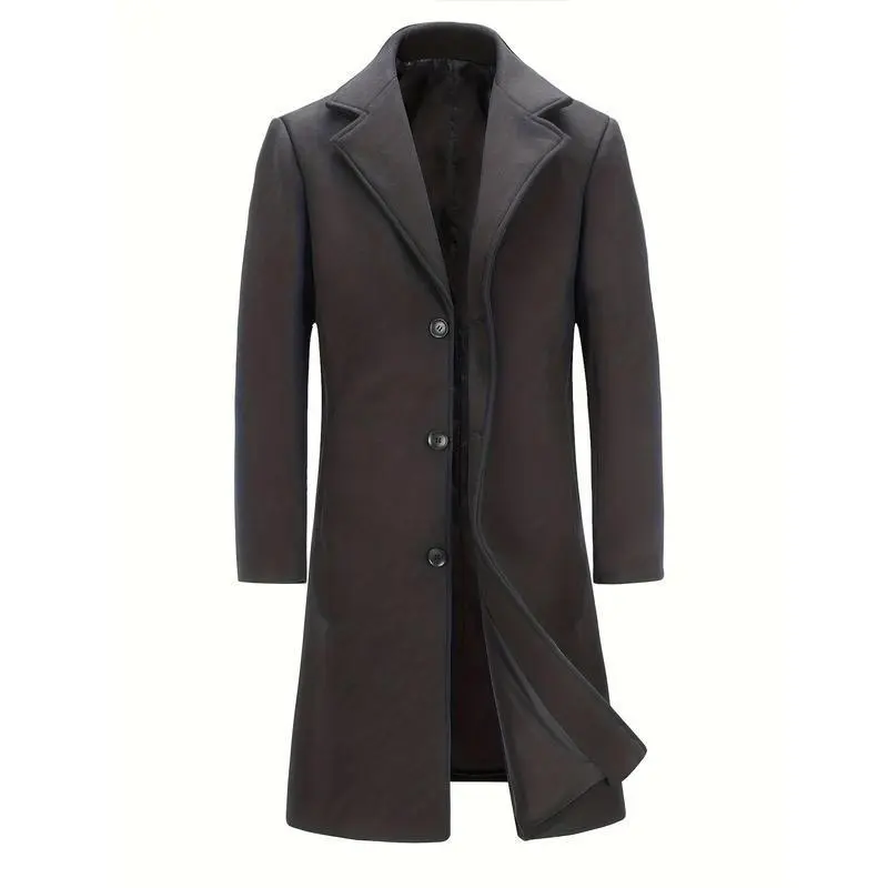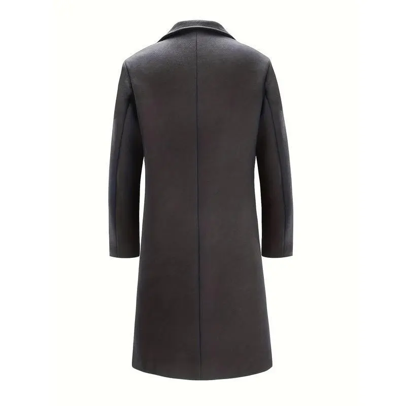 Mens Long Trench Coat - Single Breasted Wool Blend Pea Coat Warm Winter Overcoat with Pockets - For Men - Suitable for Cold Weather - Perfect Gift for Winter Holidays
