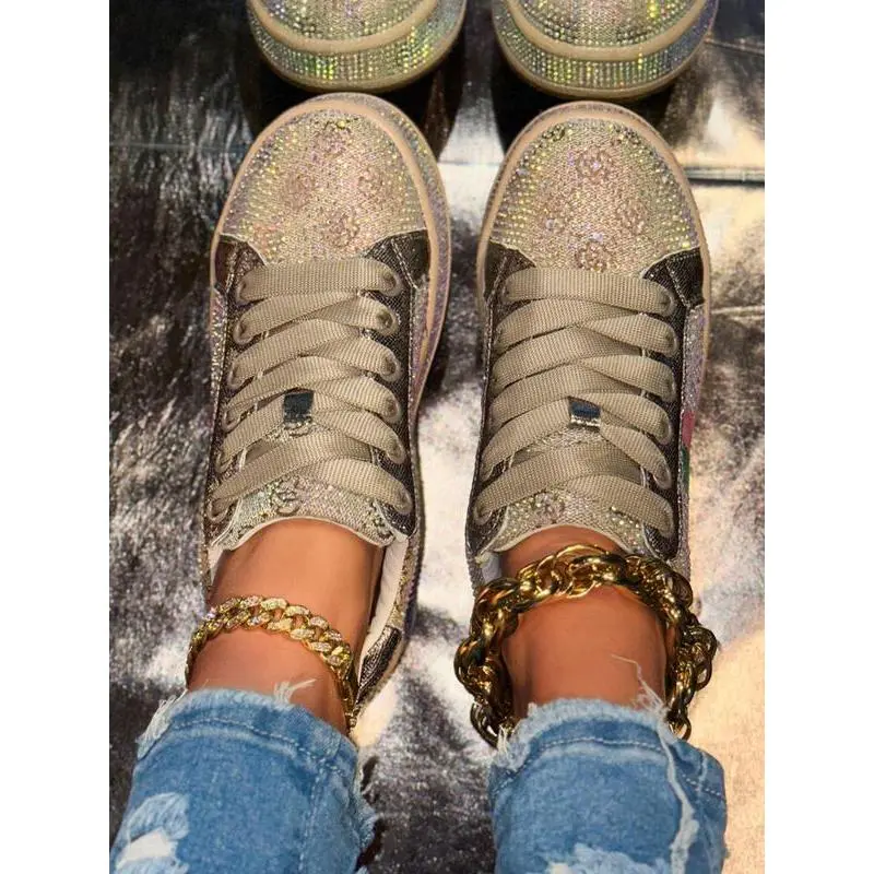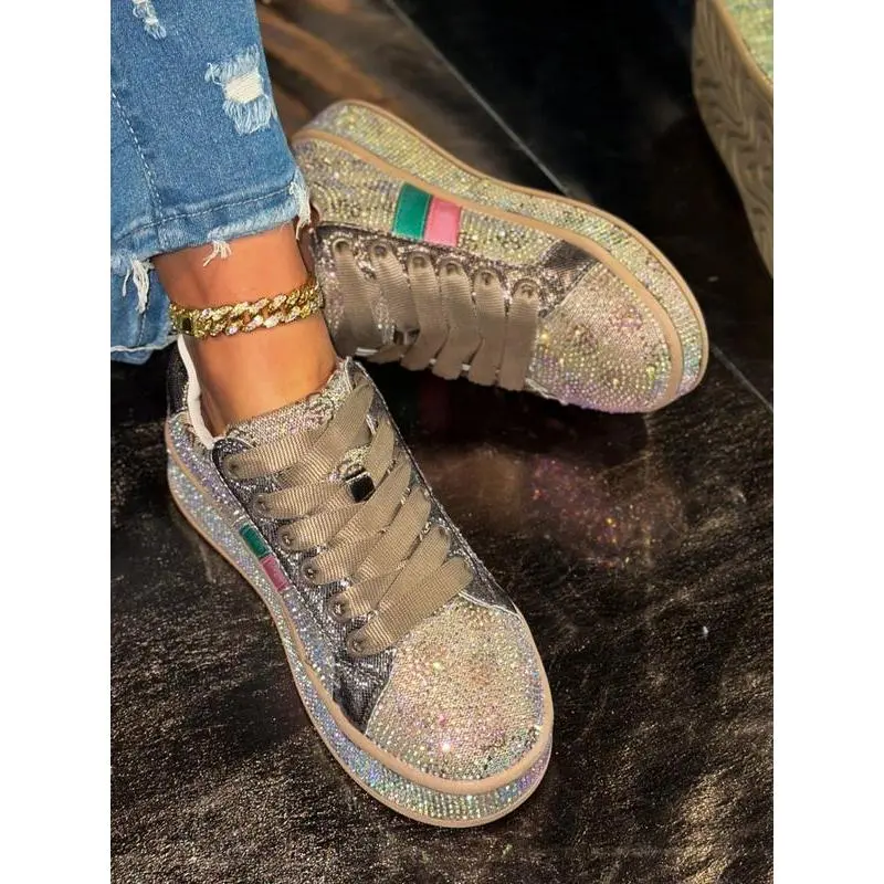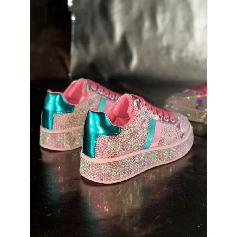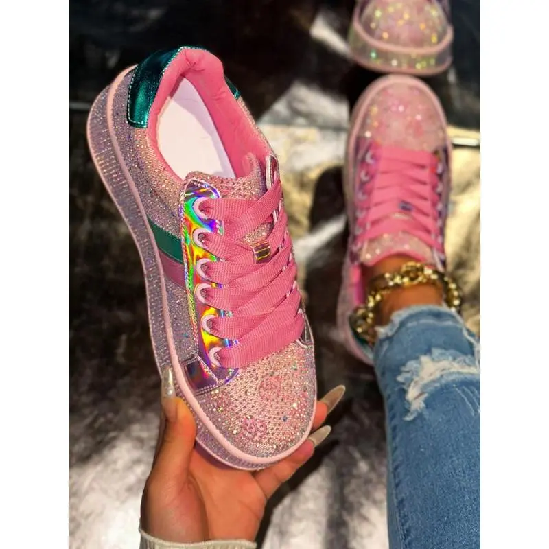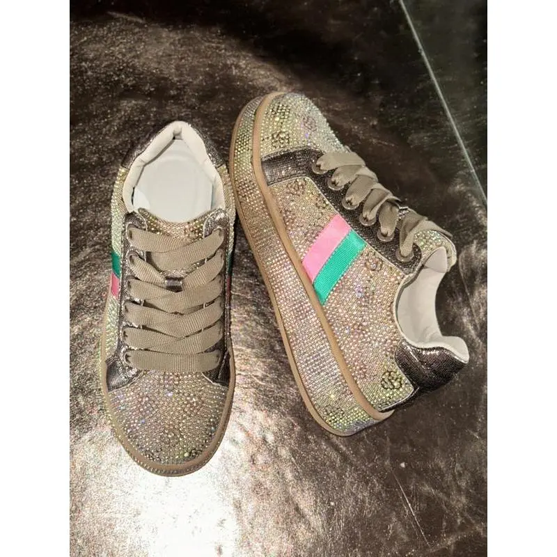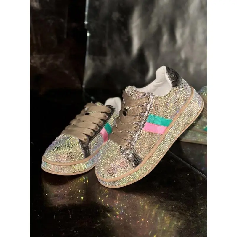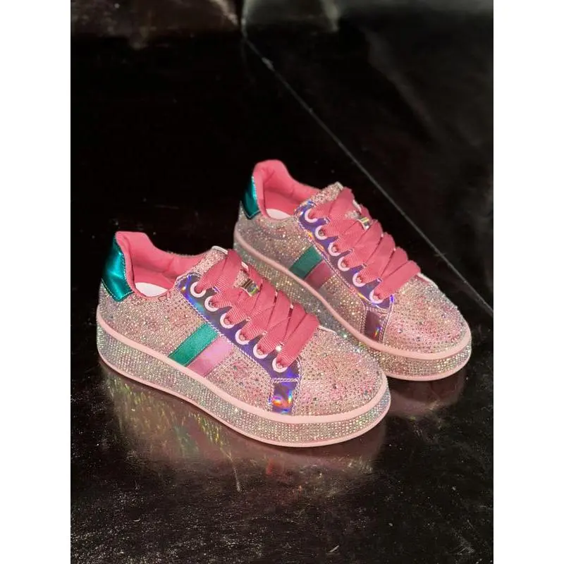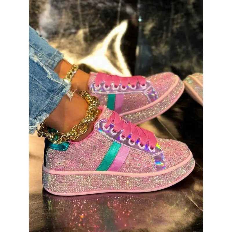 【Eye-catching glitter】: Adorned with scattered rhinestones, these shoes sparkle and reflect light, creating a vibrant visual effect. 【Rainbow shimmer】: The laser strips emit a rainbow glow, adding a captivating element that stands out in any setting. 【Rugged soles】: Constructed with durable rubber soles, ensuring reliable traction while providing a sturdy base for various activities. 【Seasonal flexibility】: Designed for all seasons, these shoes can be worn comfortably throughout the year, adapting to various weather conditions. 【Ankle height】: Featuring a less than ankle height, these shoes allow for easy movement and pairing with various types of pants.