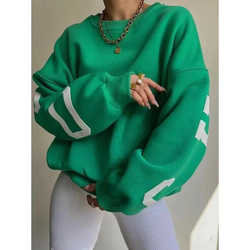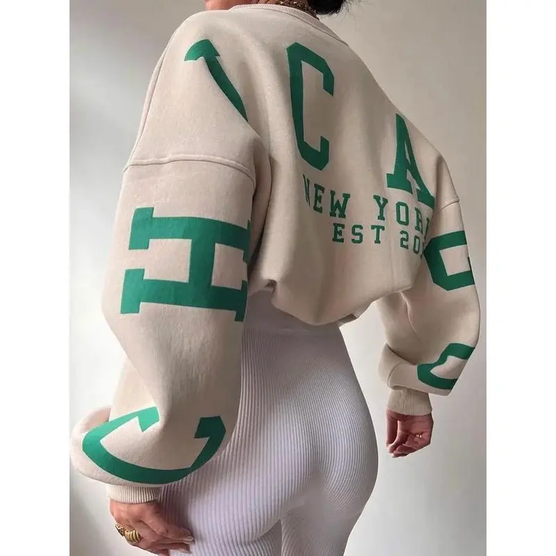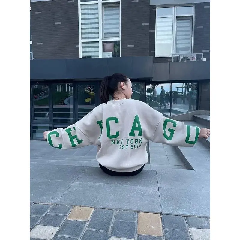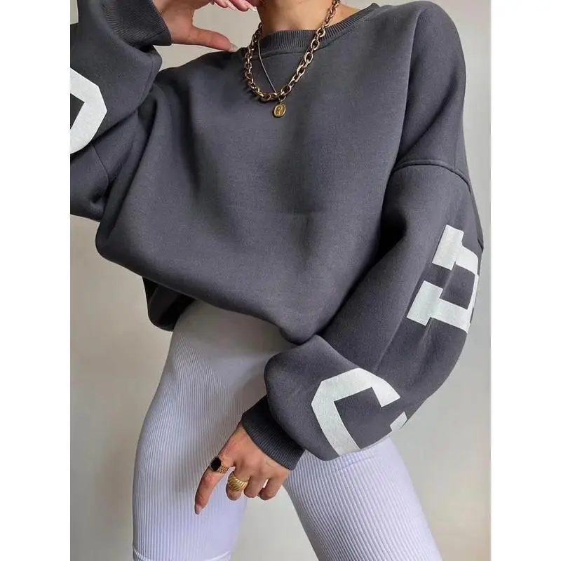 Women's Y2K Grunge Loose Pullover Sweatshirts Letter Print Casual Thickened Long Sleeve Tops Autumn Hoodie Streetwear