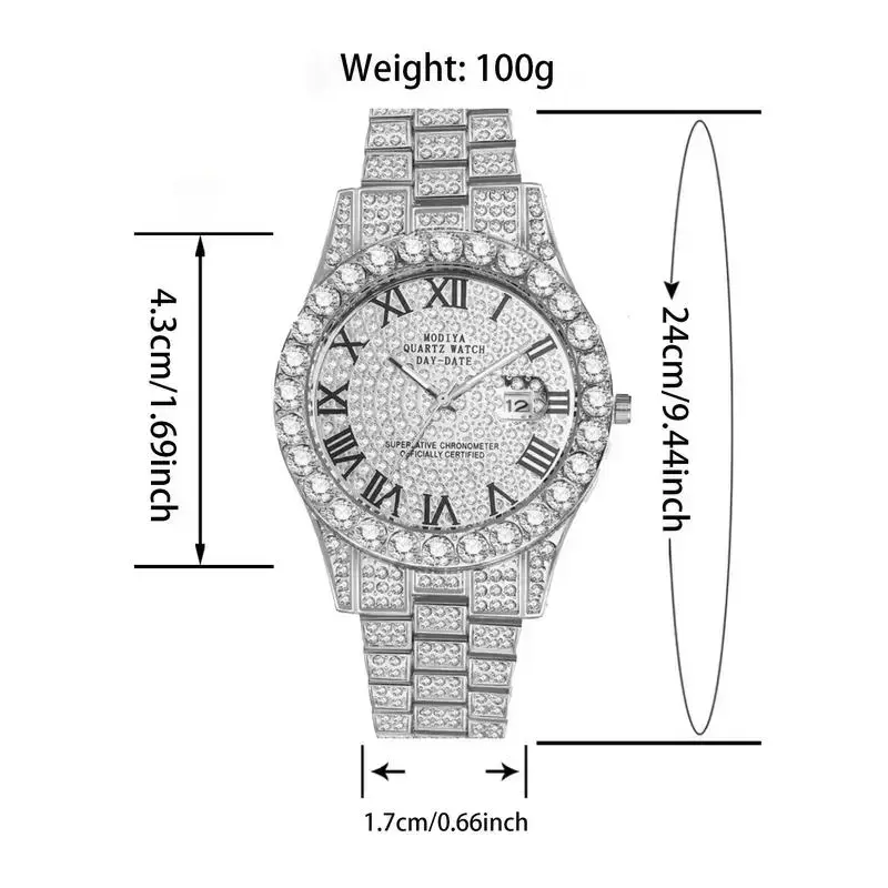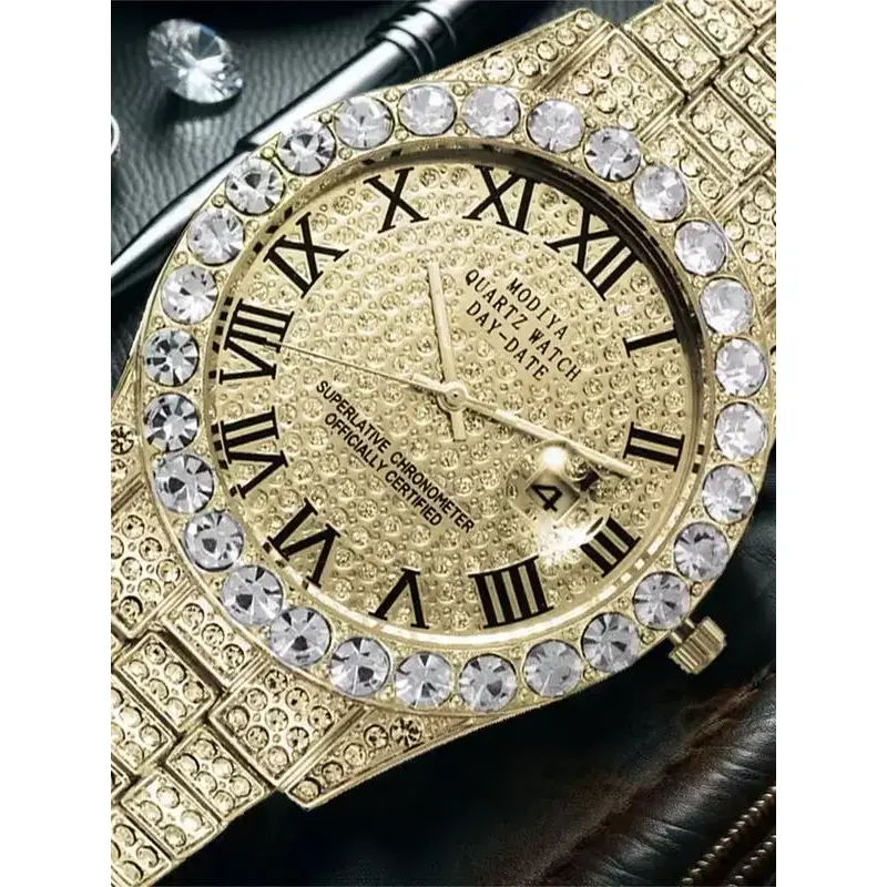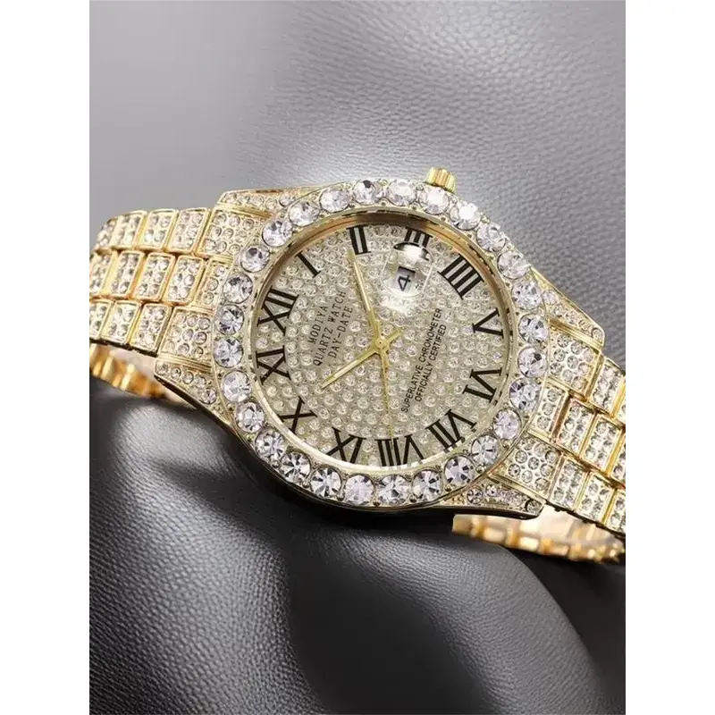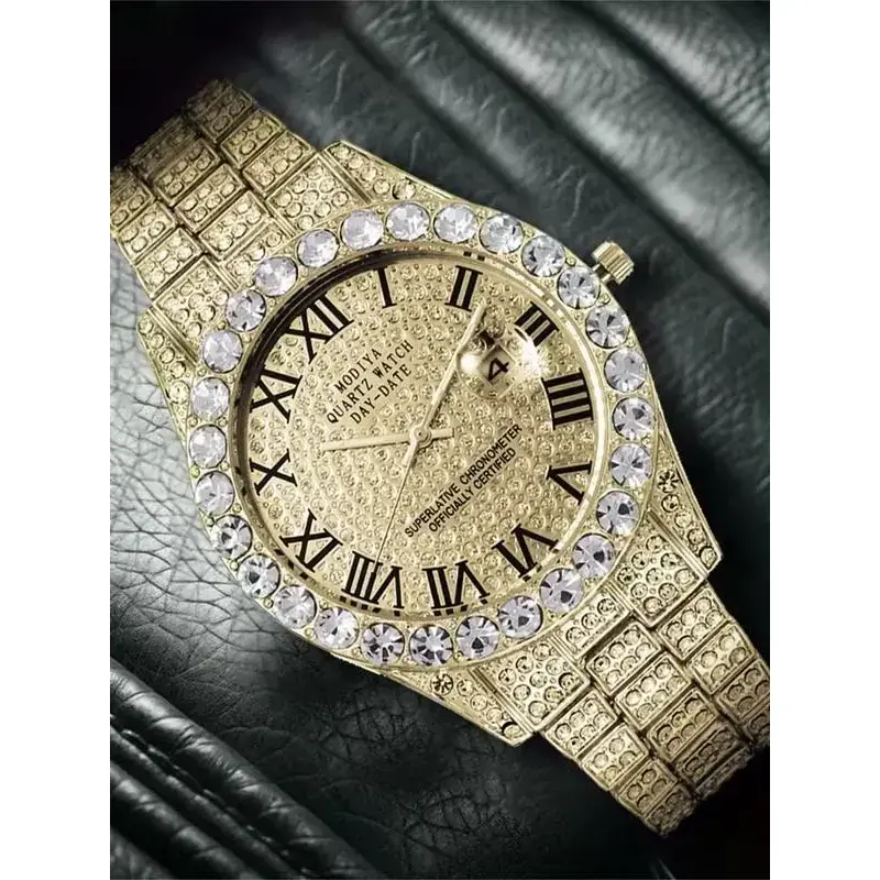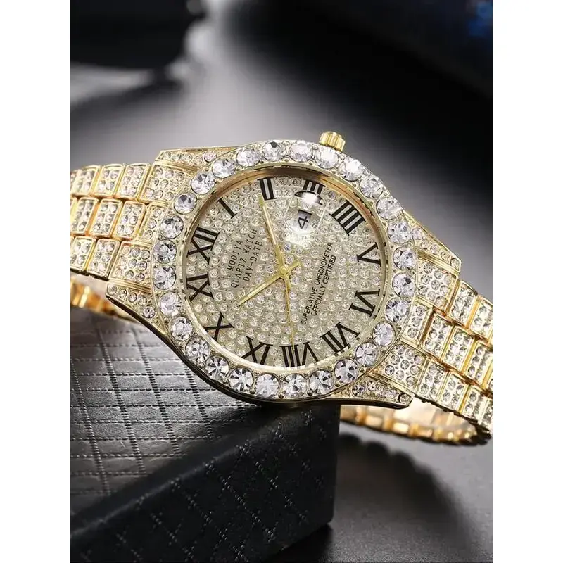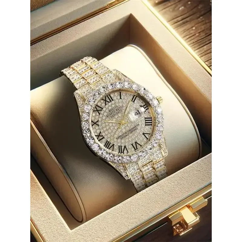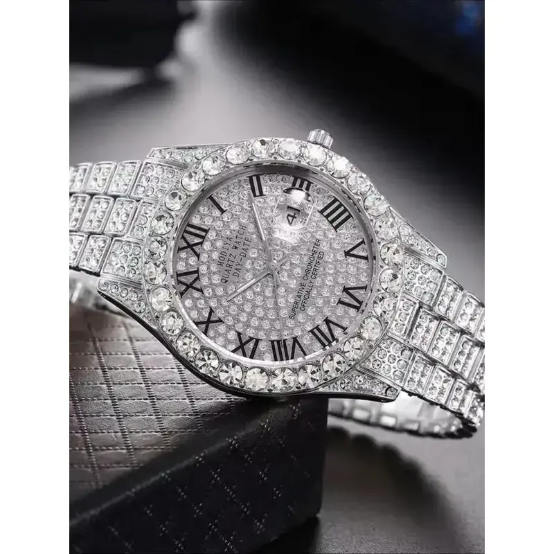 Men's Business Rhinestones Roman Scale Watch, Fashion Watch with Day Date, Daily Clothing Decor, Trendy All-match & Exquisite Watch for Birthday Gift with Box