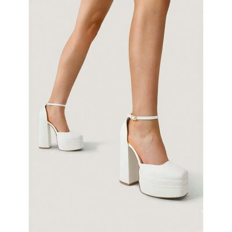 Square-Toe: These platform heels are designed with a fashionable square toe and complemented with a svelte ankle strap for a touch of glamour and elegance.
