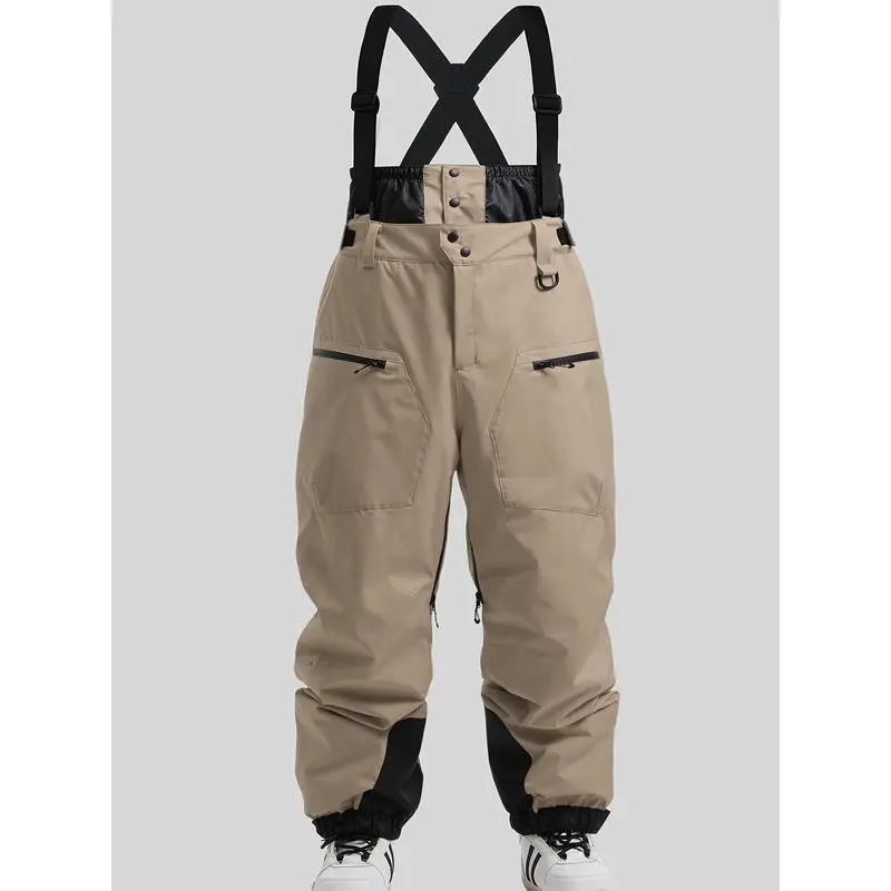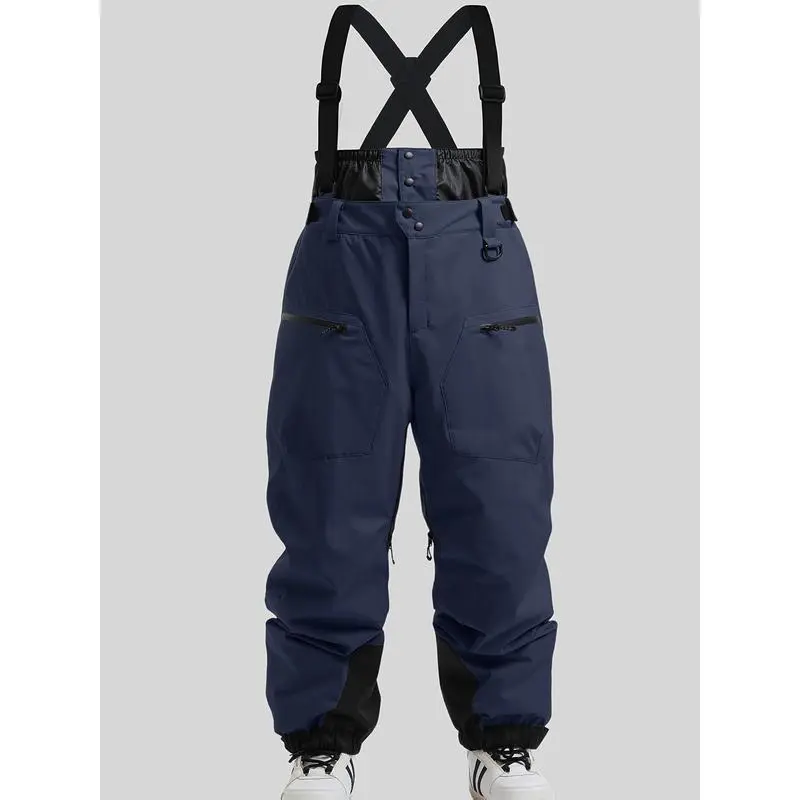 Men's Insulated Ski Bib Pants, Waterproof Windproof Breathable Snow Overalls For Winter Sports, With Pockets