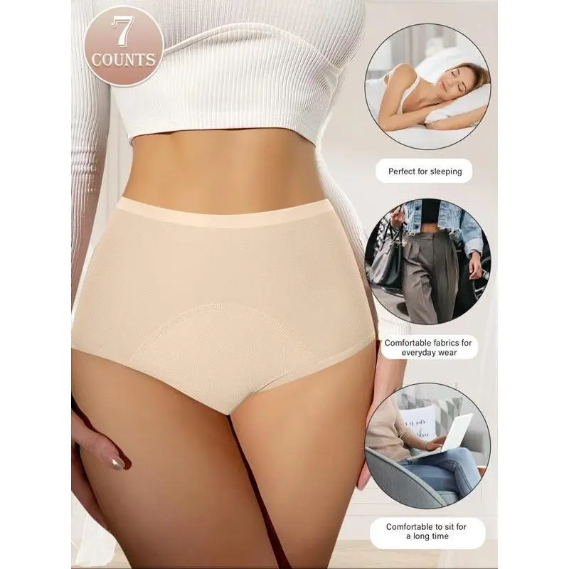 Women's Solid Color High Waist Period Panty, Breathable Comfortable Period Knicker for Daily Wear, Women's Underwear for All Seasons, Womenswear