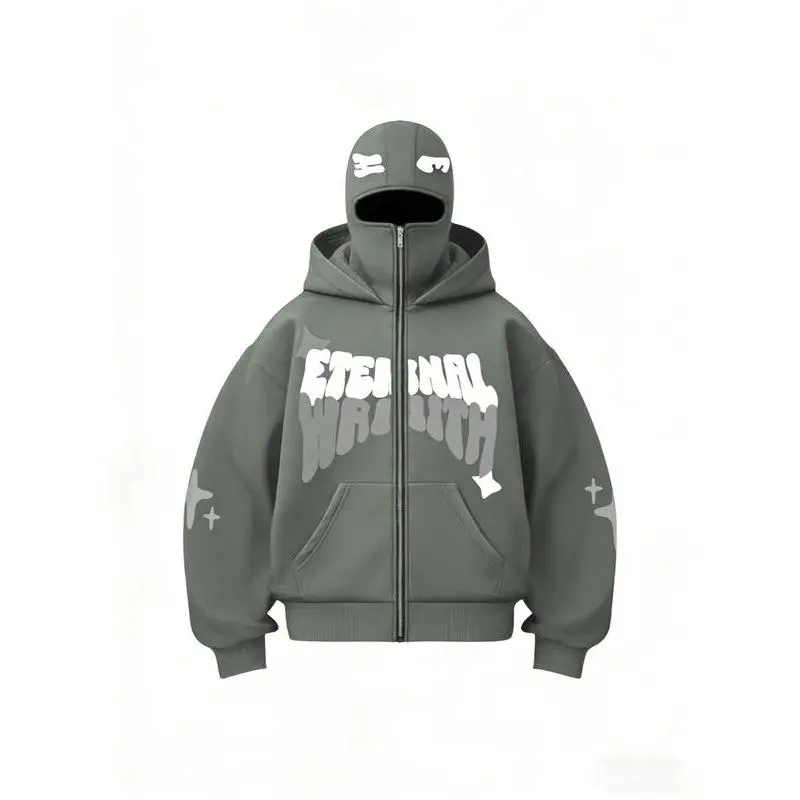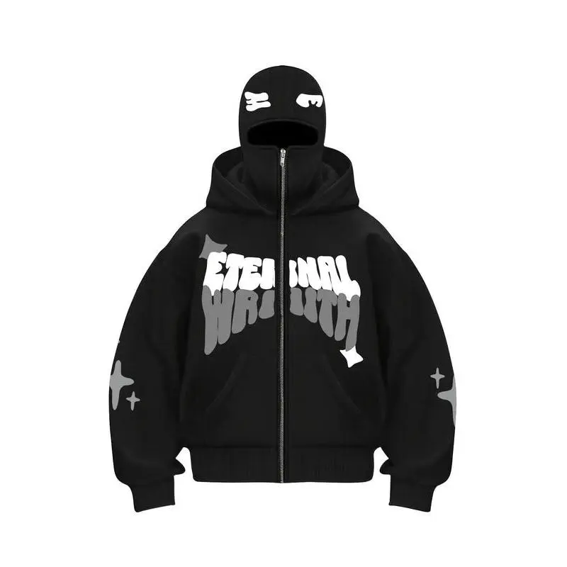 Eternal Wraith Graffiti Printed Zip-Up Balaclava Hoodie Cozy Cotton Blend Oversized Loungewear & Streetwear TikTok Viral Hoodie for Men Women | Home Comfort & Edgy Street Style Essential with Unique Star & Letter Design