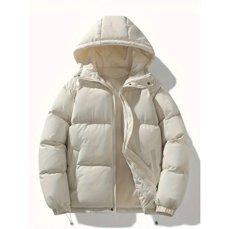 Vibe Vogue Unisex Hooded Puffer Jacket, Polyester Fiber Filled, Non-Stretch Solid Color, Long Sleeve, Regular Fit, with Drawstring, Zipper Placket, for Daily Casual Wear, Spring/Autumn/Winter Coat, MD3333 Black Tops Womenswear Fab