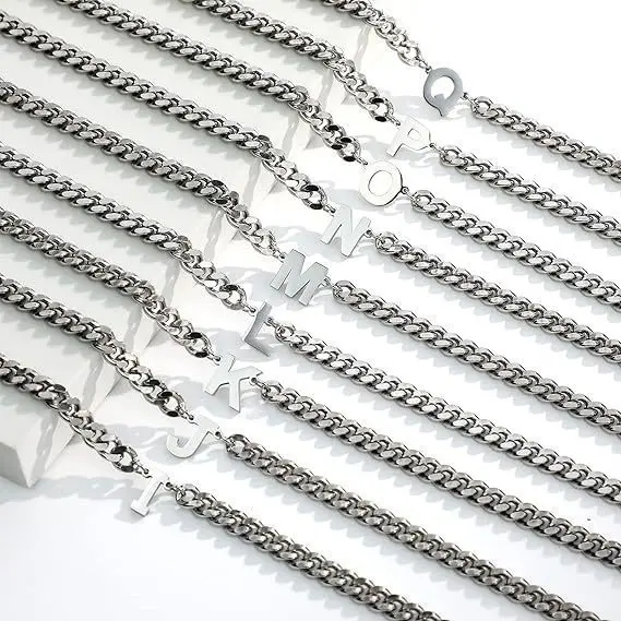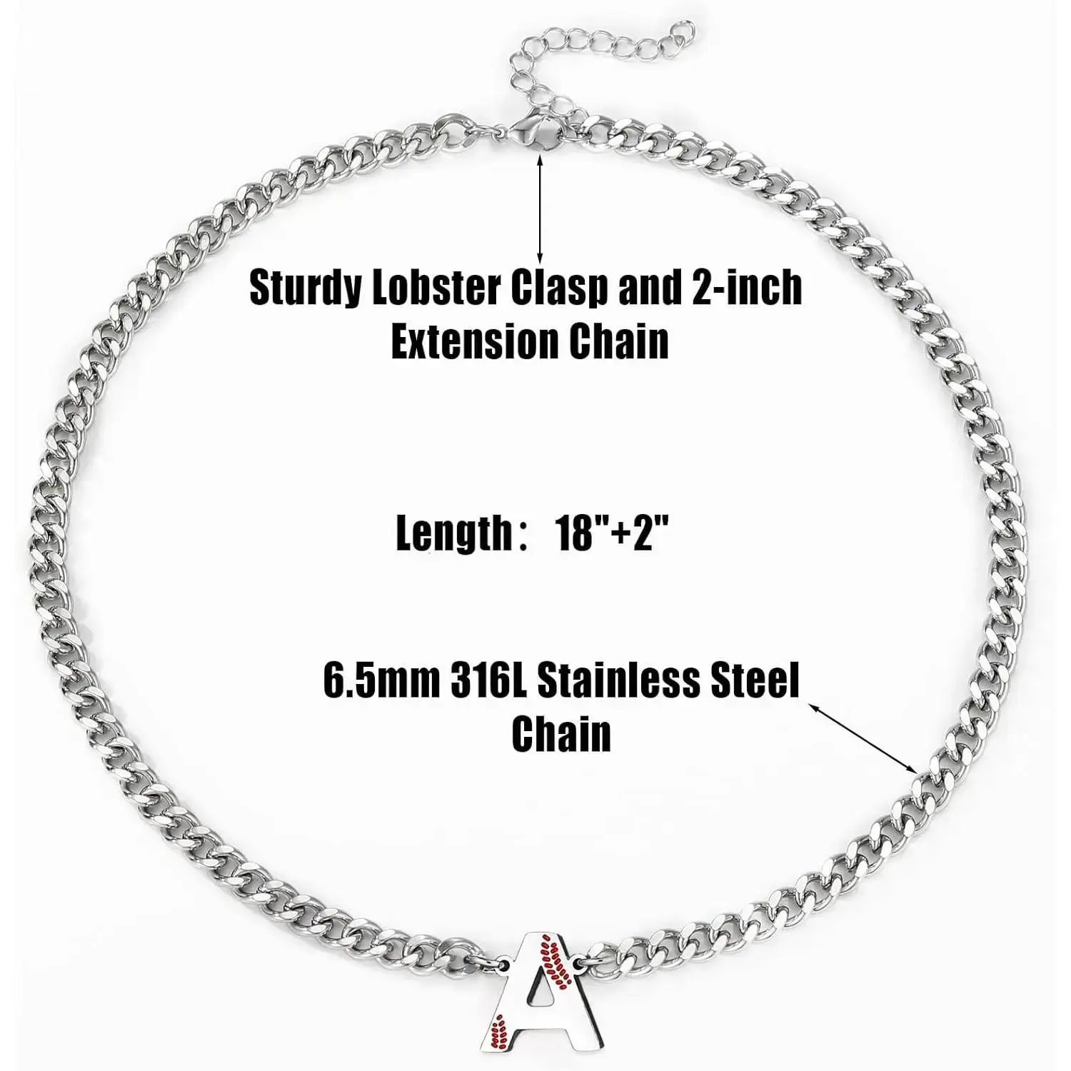 Stocking Stuffers-Baseball Necklaces for Boys Stainless Steel Initial Necklace with Letter A-Z 6.5mm Cuban Chain Adjustable Gifts for Men Boys 16+2 Inches