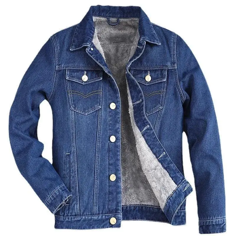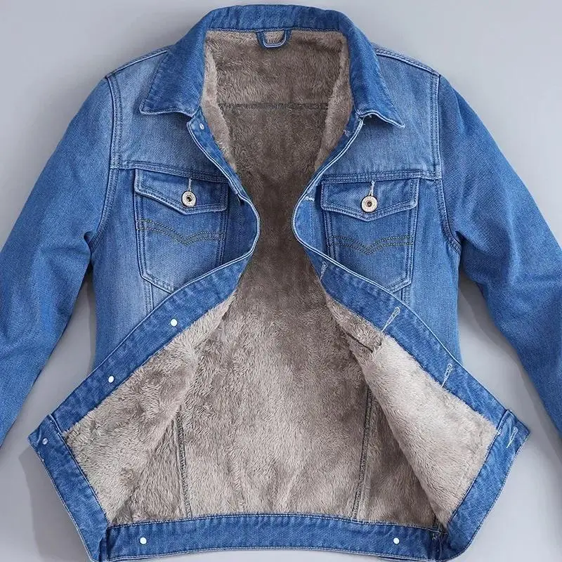Male capsule wardrobe Autumn Winter Men's Velvet Cotton Denim Jacket Male Thick Warm Lined Fleece Jeans Jackets Blue Slim Jeans Coat Top Men's 2025-hwomen's sportwear