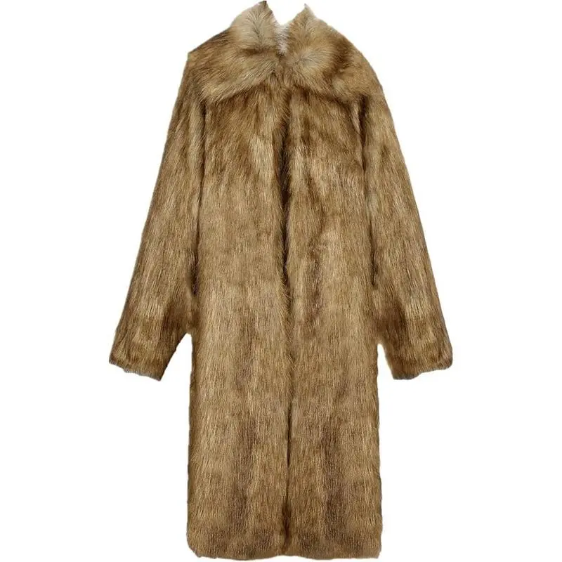 Men's Fluffy Faux Fur Coat Winter Long Jacket Overcoat Parka Outwear
